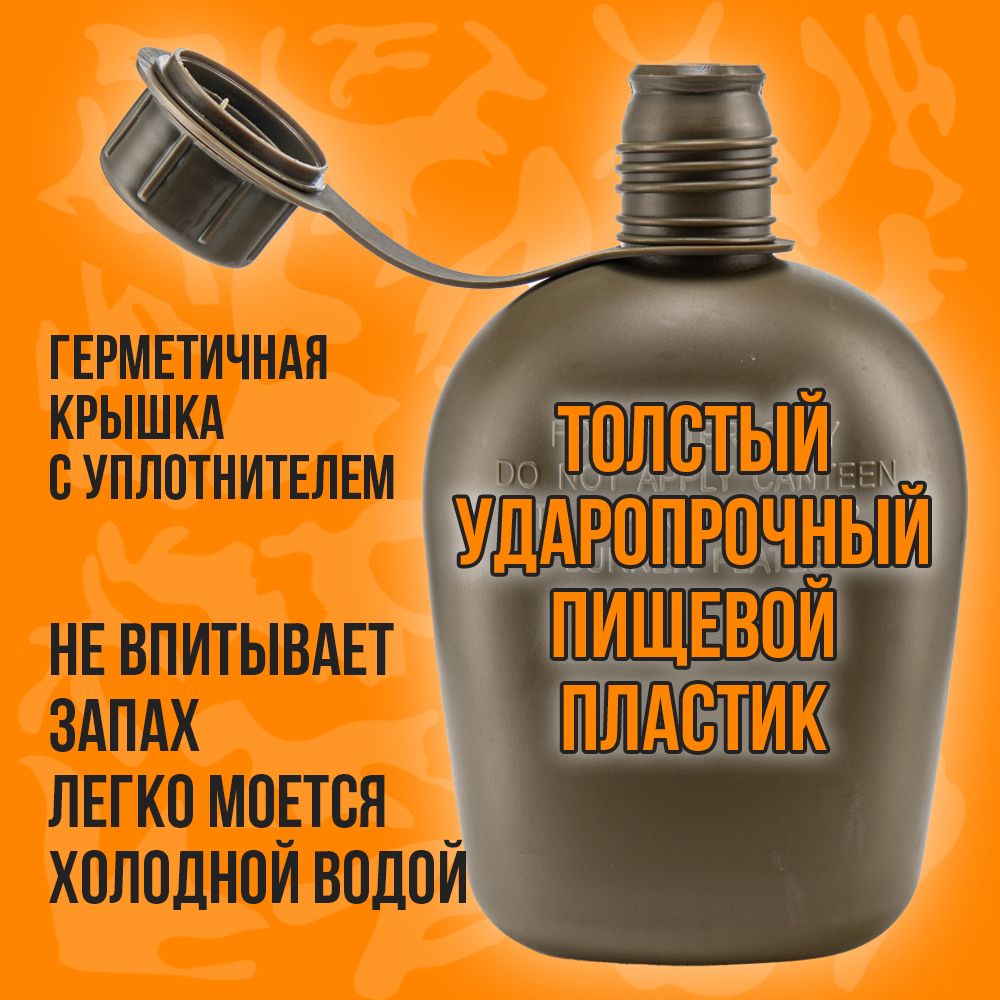 - материал/объем/размер /вес фляги: прочный к деформации пищевой полимер /1000мл / 127х72х205мм/160гр.