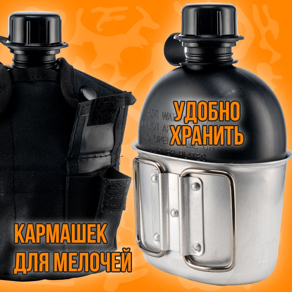 - состав: армейская фляга, котелок, чехол с кармашком для переноса.