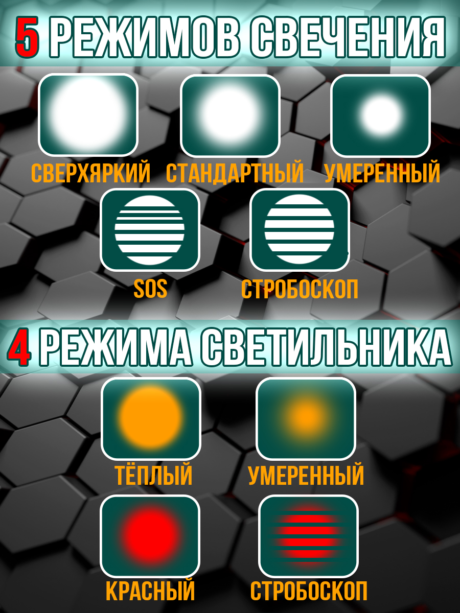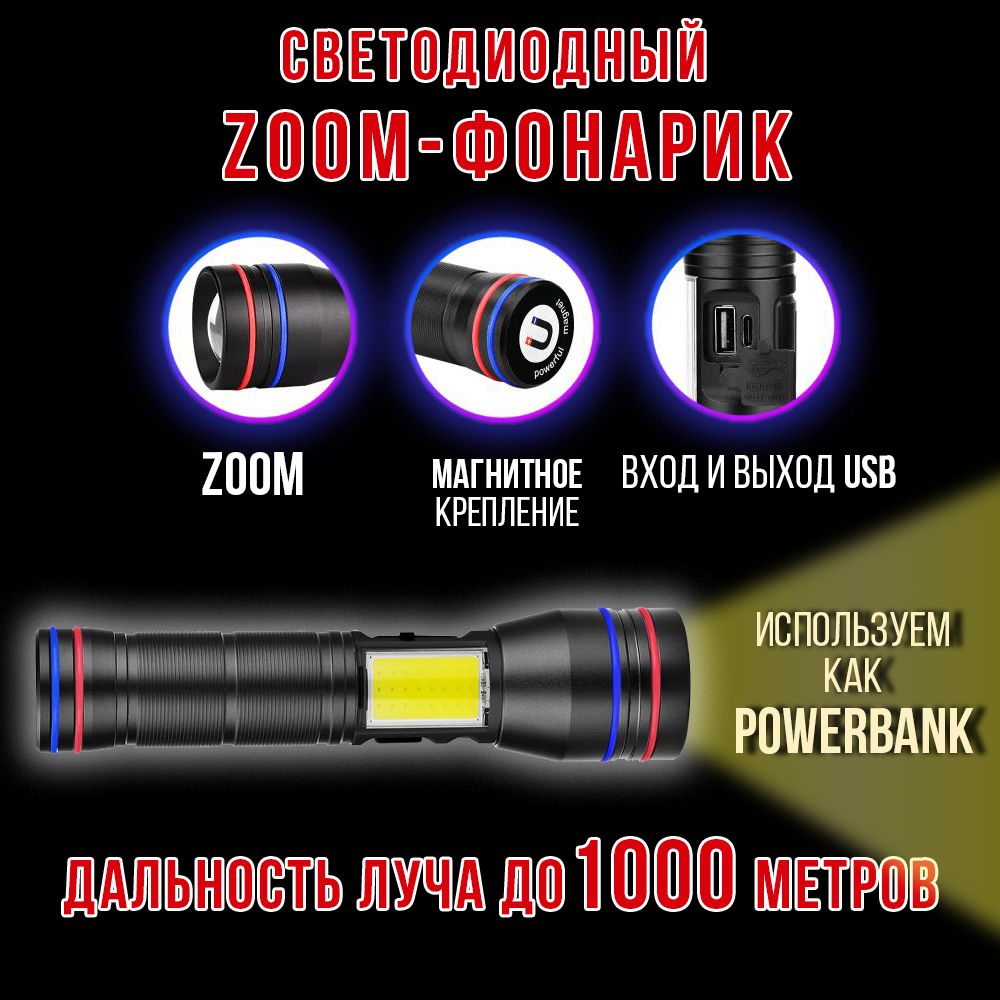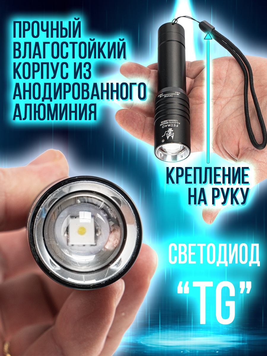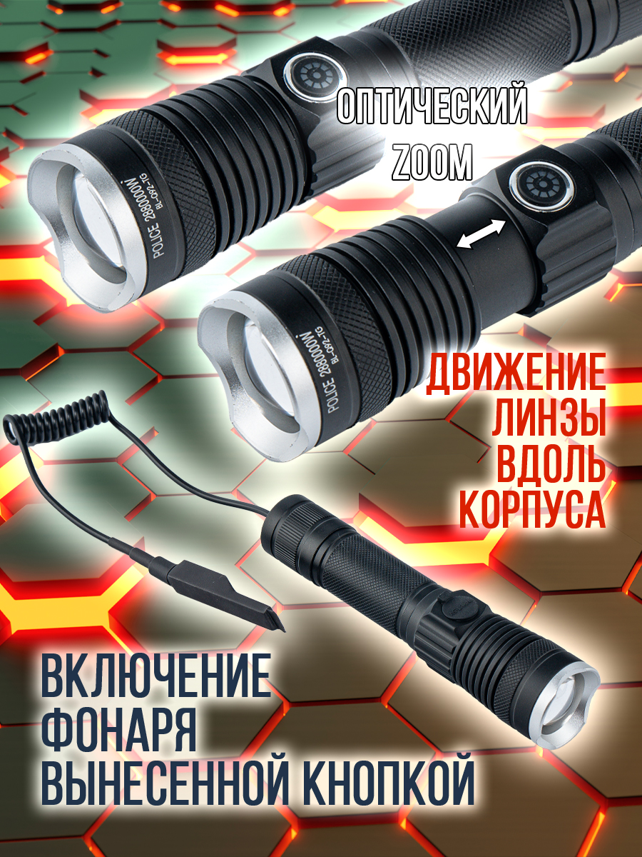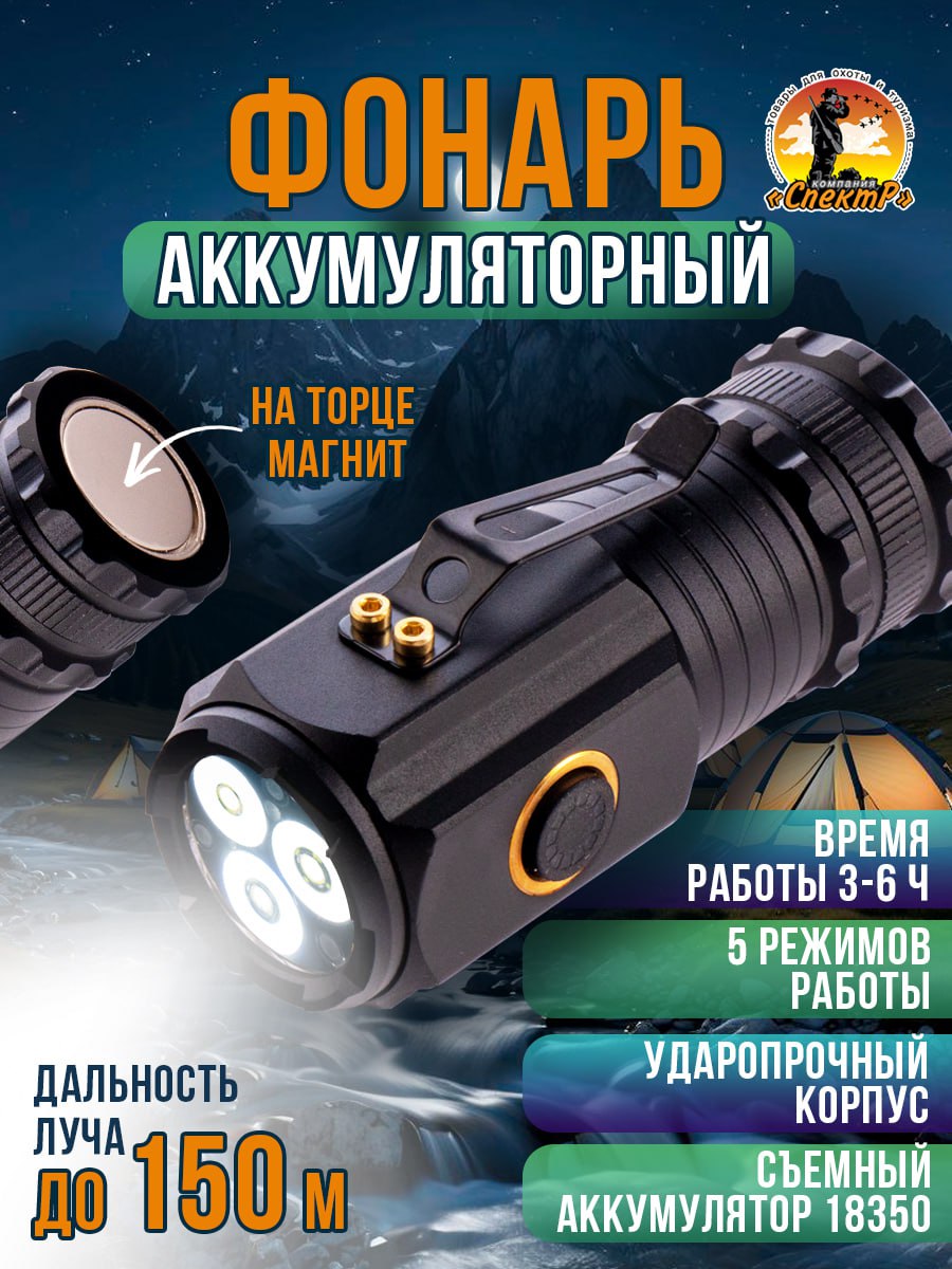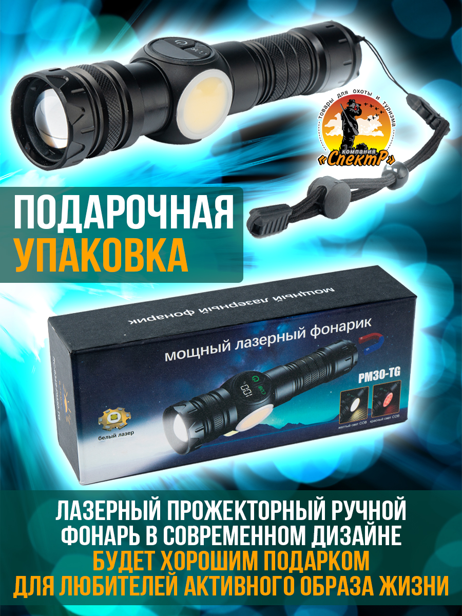 Модель 6310 – многофункциональный, аккумуляторный, с мощным/ярким свечением ручной фонарь. Особенностью является светодиод нового поколения (новинка 2023г) «РМ10-TG » с улучшенной теплоотдачей, рекордными показателями светопередачи, позволяющий увеличить световой поток, уменьшить расход потребляемой энергии (на 50%, в сравнении с диодом Р50-Р90) и увеличить продолжительность его срока службы. Дальность и широкий угол освещения выполняет объектив с оптической линзой и функцией Zoom, позволяющий рассеивать световой пучок от широкого до узконаправленного пятна, в зависимости от потребности пользователя. На боковой панели имеется дополнительный COB диод (белый, красный свет), выполняющий роль кемпингового фонарика. Режим работы диода РМ10-TG: яркий, экономичный, сигнальный (стробоскоп). СОВ диода: яркий, экономичный и моргающий по переменно красным/белым цветом. Ударопрочный корпус фонаря из анодированного алюминия и резиновыми кнопками обеспечивает герметизацию и защиту от пыли и влаги. Качественный РС материал для лампового стекла и линз делает их прочными, прозрачными и жароустойчивыми. Зарядить фонарь можно от любого USB выхода. Разъем питания Type-C. Так же на корпус встроен индикатор уровня заряда из 4х диодов и USB разъем для использования фонаря в роли Power Bank, для зарядки электронных мобильных устройств. Источник питания съемный аккумулятор 26650. В заднюю крышку встроен мощный магнит, для удобного крепления фонаря в нужном положении. Сфера применения данной модели от бытового до профессионального использования, а современный дизайн ручного фонаря послужит хорошим подарком для поклонников активного образа жизни.