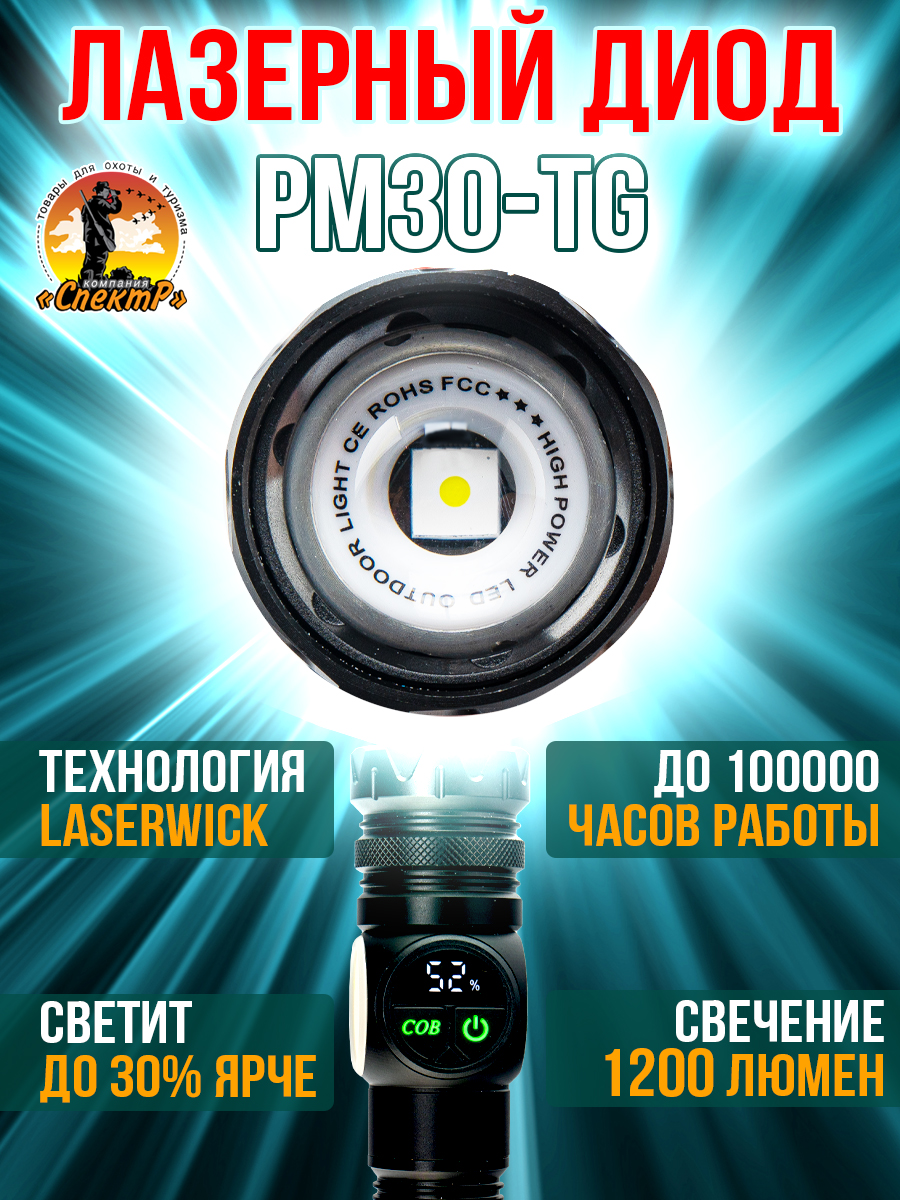 - тип светодиода: РМ10-TG (белый лазер), СОВ (красный/белый).