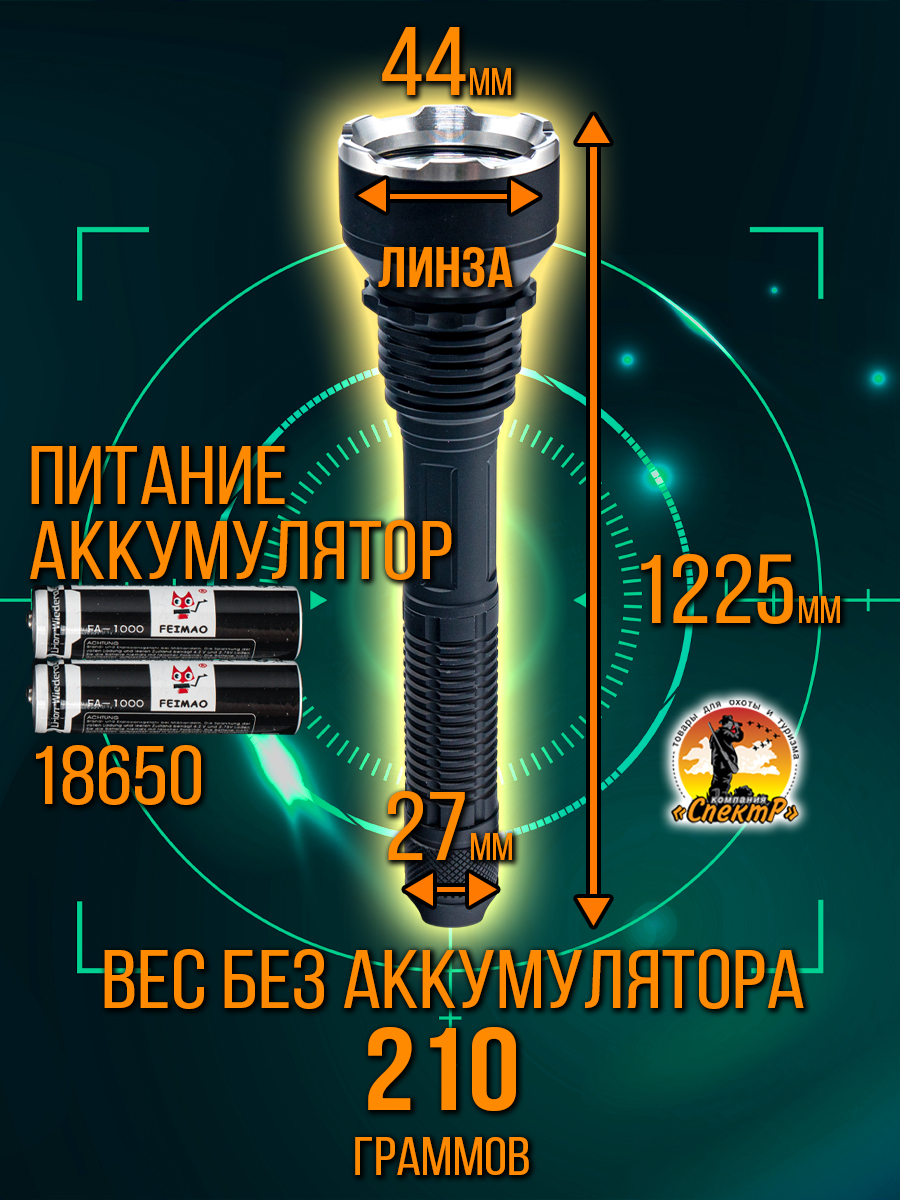 - тип электропитания: аккумулятор 26650.