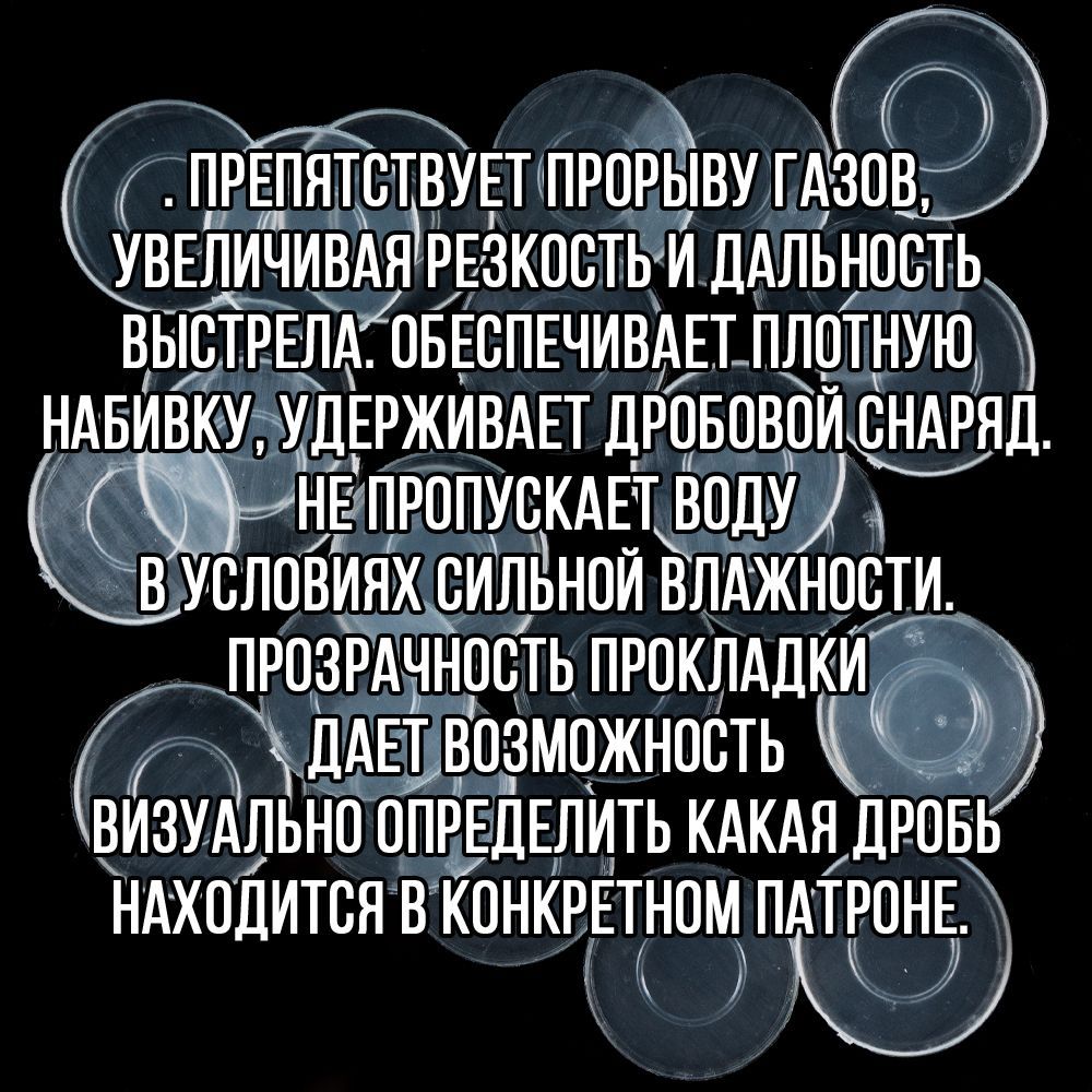 - вид: пластиковая прозрачная прокладка на порох / дробь.