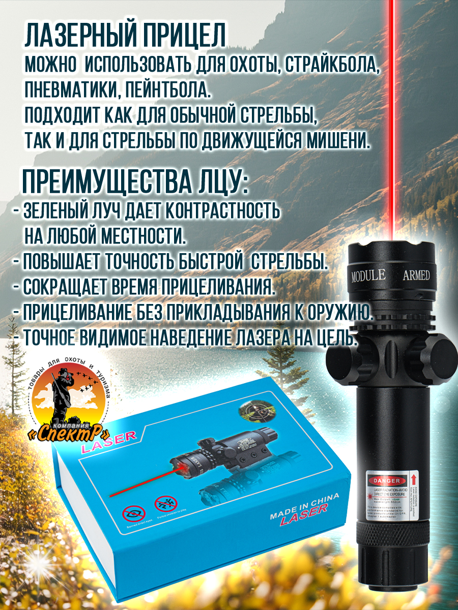"Модель ЛЦУ 803К– аккумуляторный, компактный, подствольный лазерный целеуказатель (прицел). ЛЦУ применим как для обычной стрельбы, так и по движущимся мишеням с хорошей точностью на ближней и средней дистанции и с возможностью ведения огня в условиях плохой освещенности. Прицеливание производится с двумя открытыми глазами, что существенно увеличивает угол обзора стрелка. Конструкция целеуказателя и его крепления из алюминиевого сплава с высокой прочностью и анодированным покрытием, для защиты от появления ржавчины. Луч зеленого цвета дает большую контрастностью практически на любой местности. В комплекте два вида креплений (кронштейна). Один для установки под планку вивер, другой в обхват ствола. Включение/выключение производится с помощью кнопки, расположенной с тыльной части корпуса, либо можно установить выносную кнопку (гибкий шнур) для удаленного включения в любом удобном месте. Отстройка лазера по вертикале/горизонтали осуществляется при помощи двух винтов, спрятанных под колпачками. ЛЦУ подходит на гладкоствольное, нарезное и страйкбольное оружие, а красивый эргономичный дизайн послужит хорошим подарком для поклонников активного образа жизни.