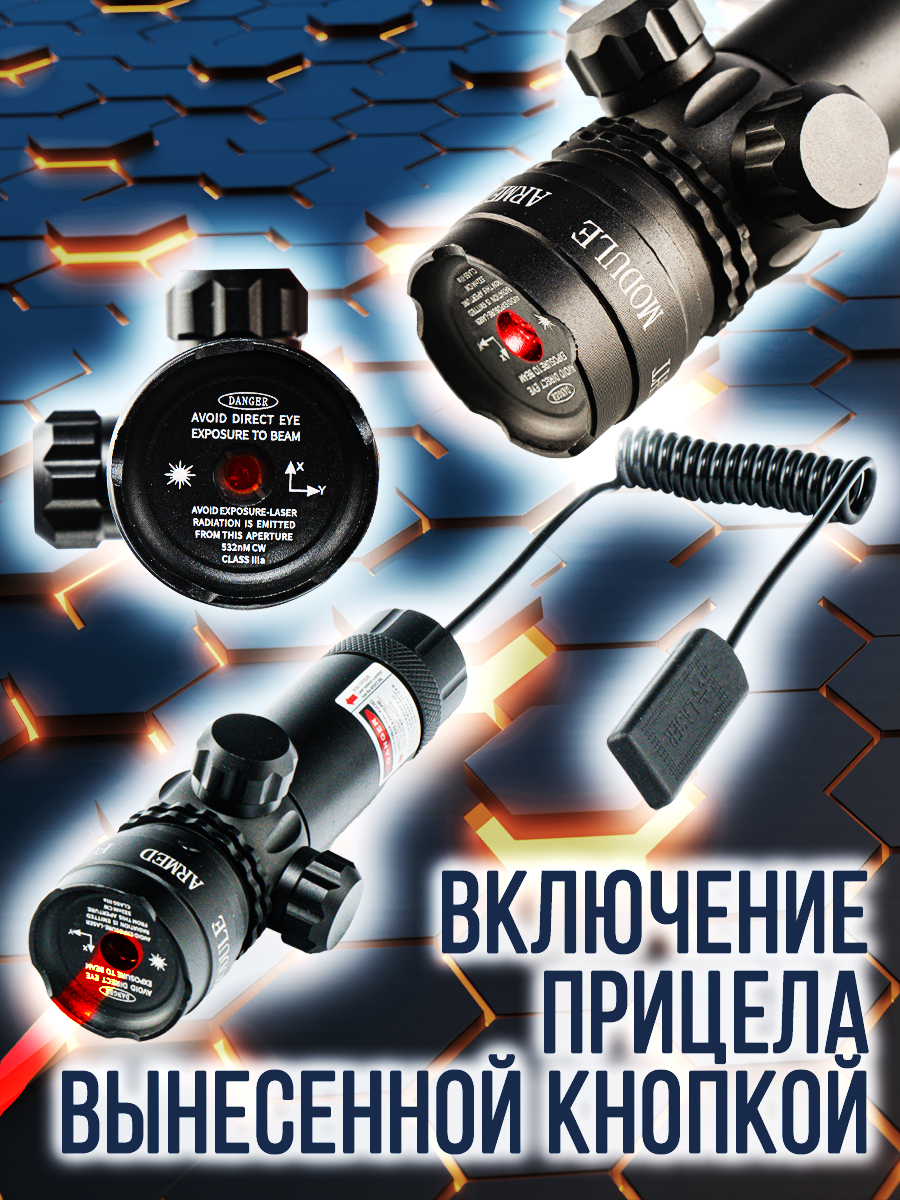 Для приведения прицела в рабочие состояние, необходимо вставить элемент питания, минусом внутрь батарейного отсека и закрутить крышку до упора. Проверить на функциональность - включить и проверить торцевую и выносную кнопку.