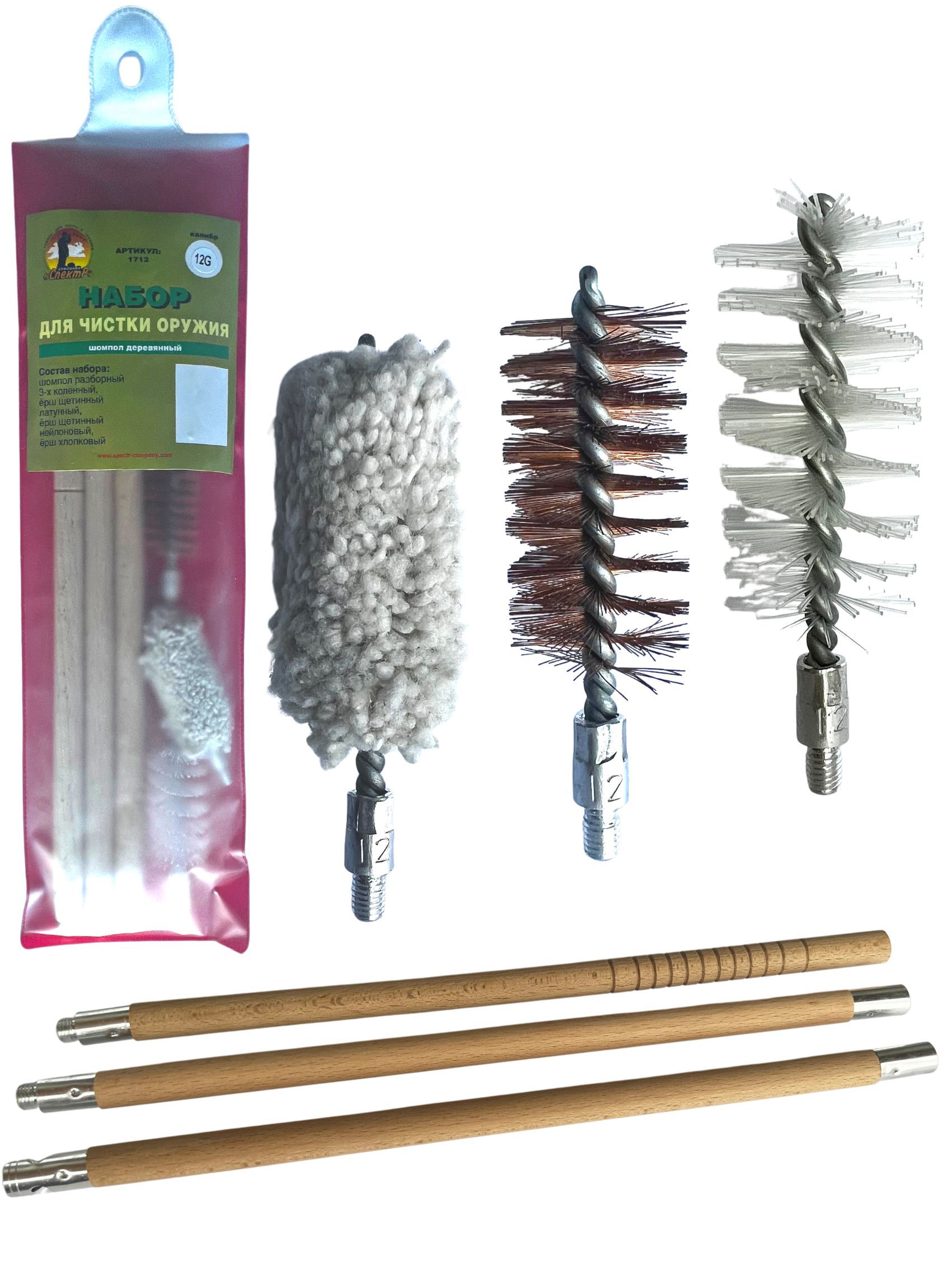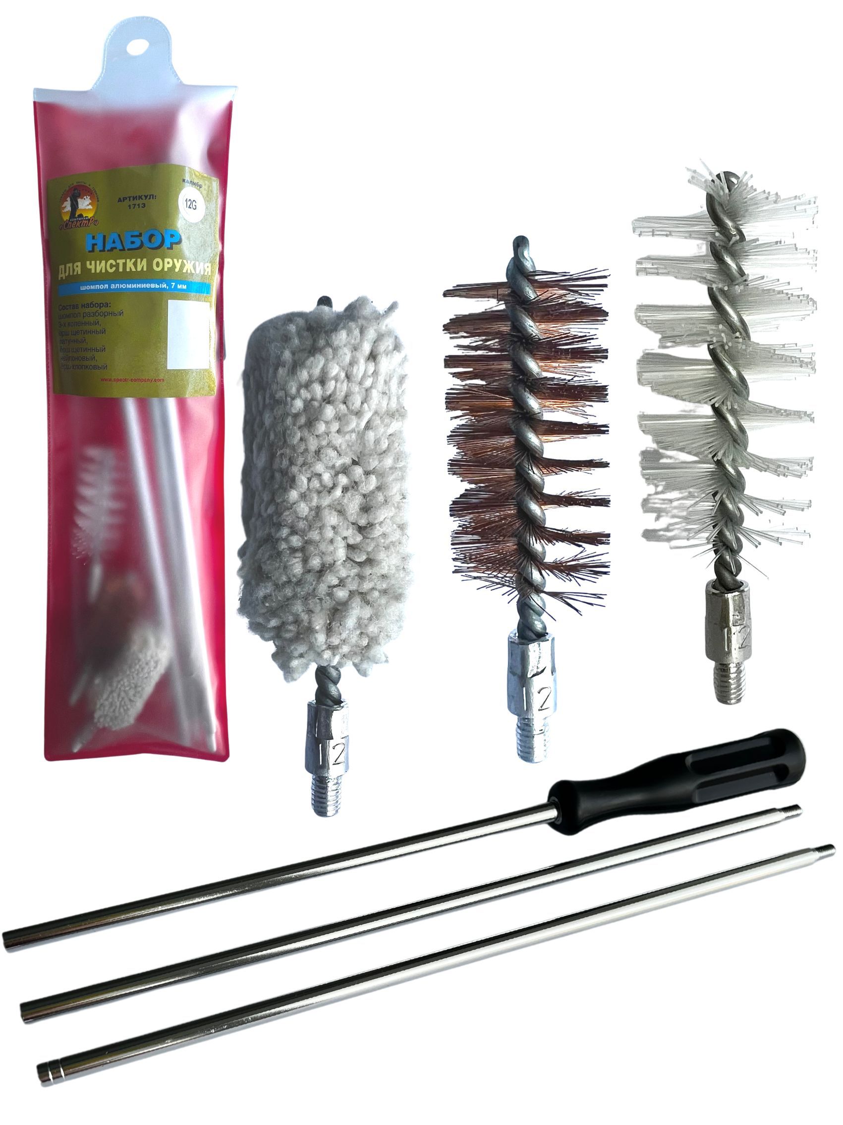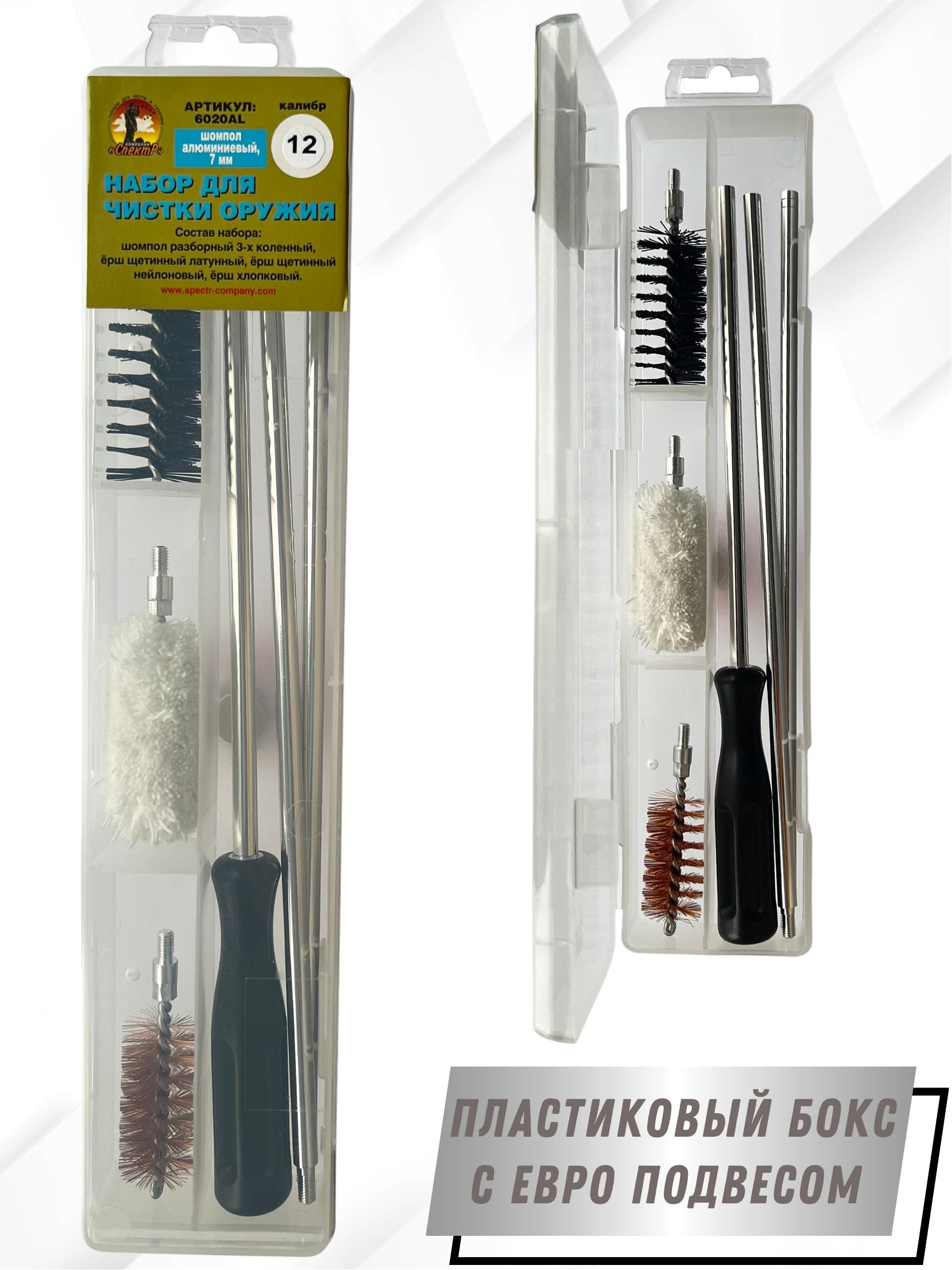 - Состав набора: шомпол, щетки(3шт), блистер с евро подвесом.