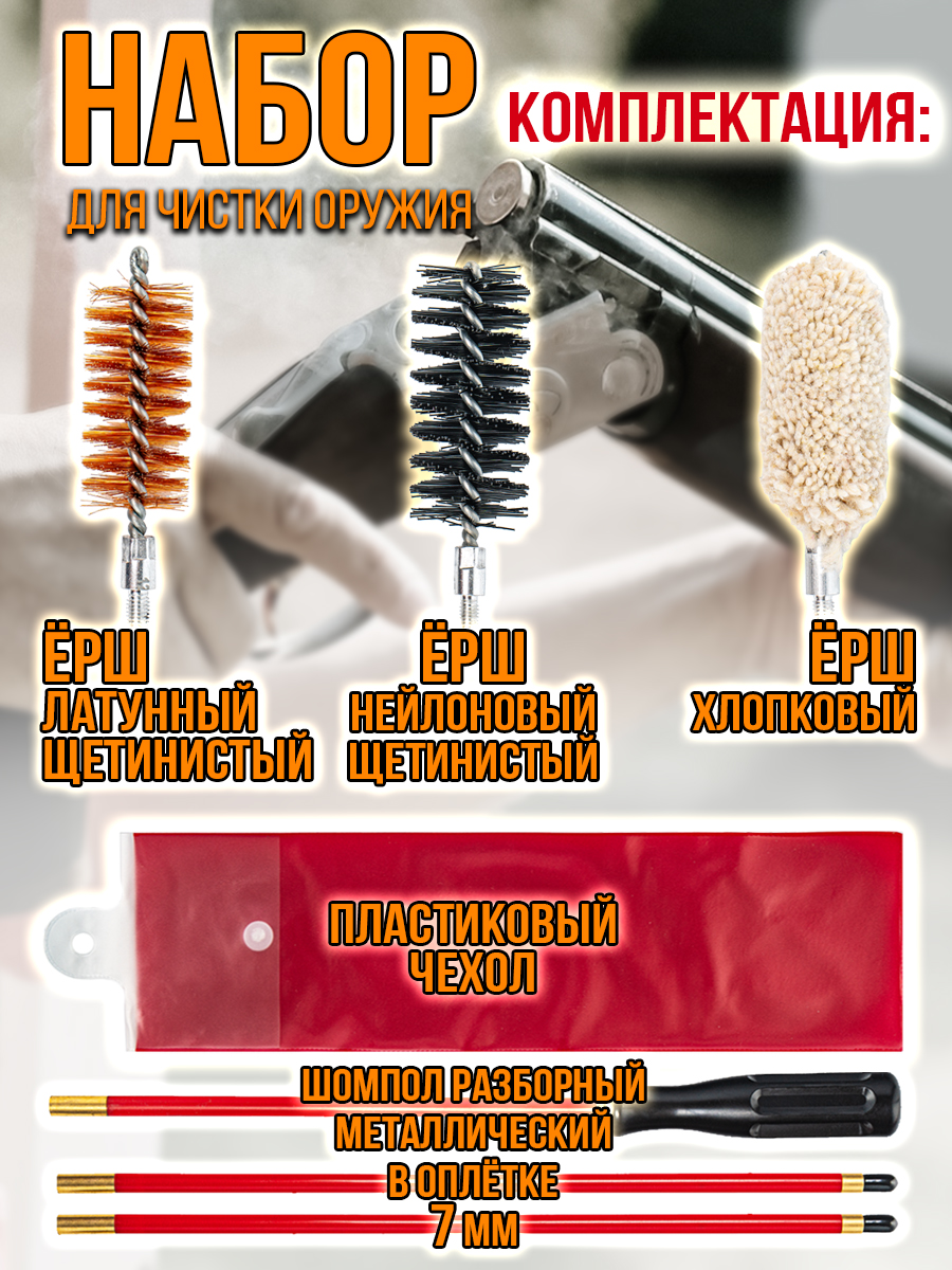 - Тип/назначение: чистка и уход за гладкоствольным оружием/ после охоты (стрельбы) в домашних и полевых условиях.