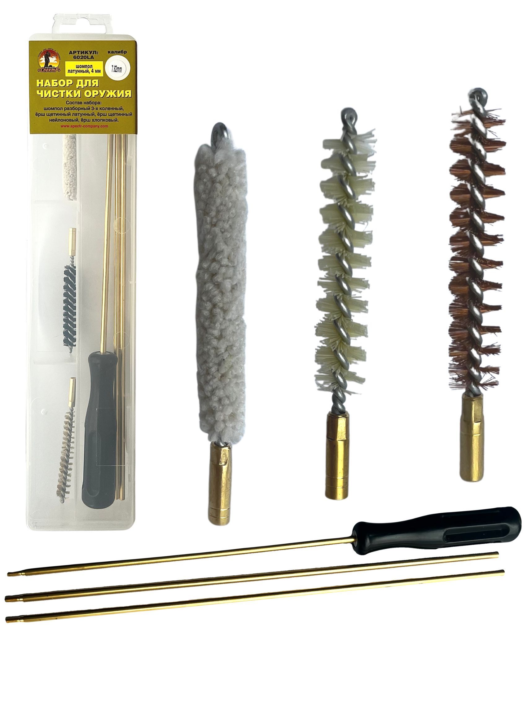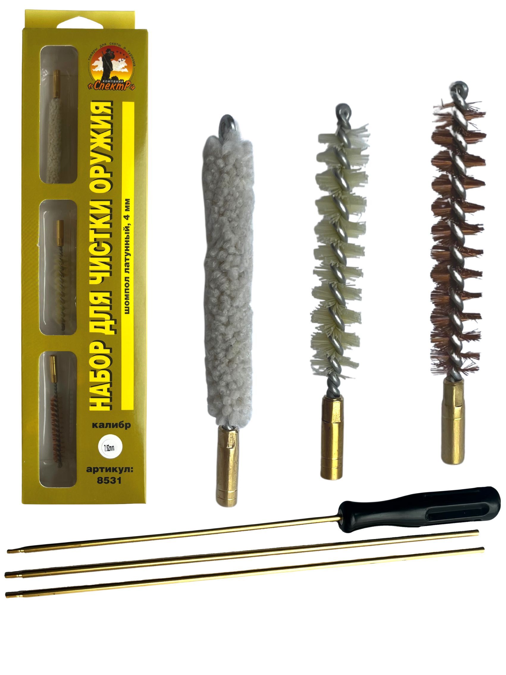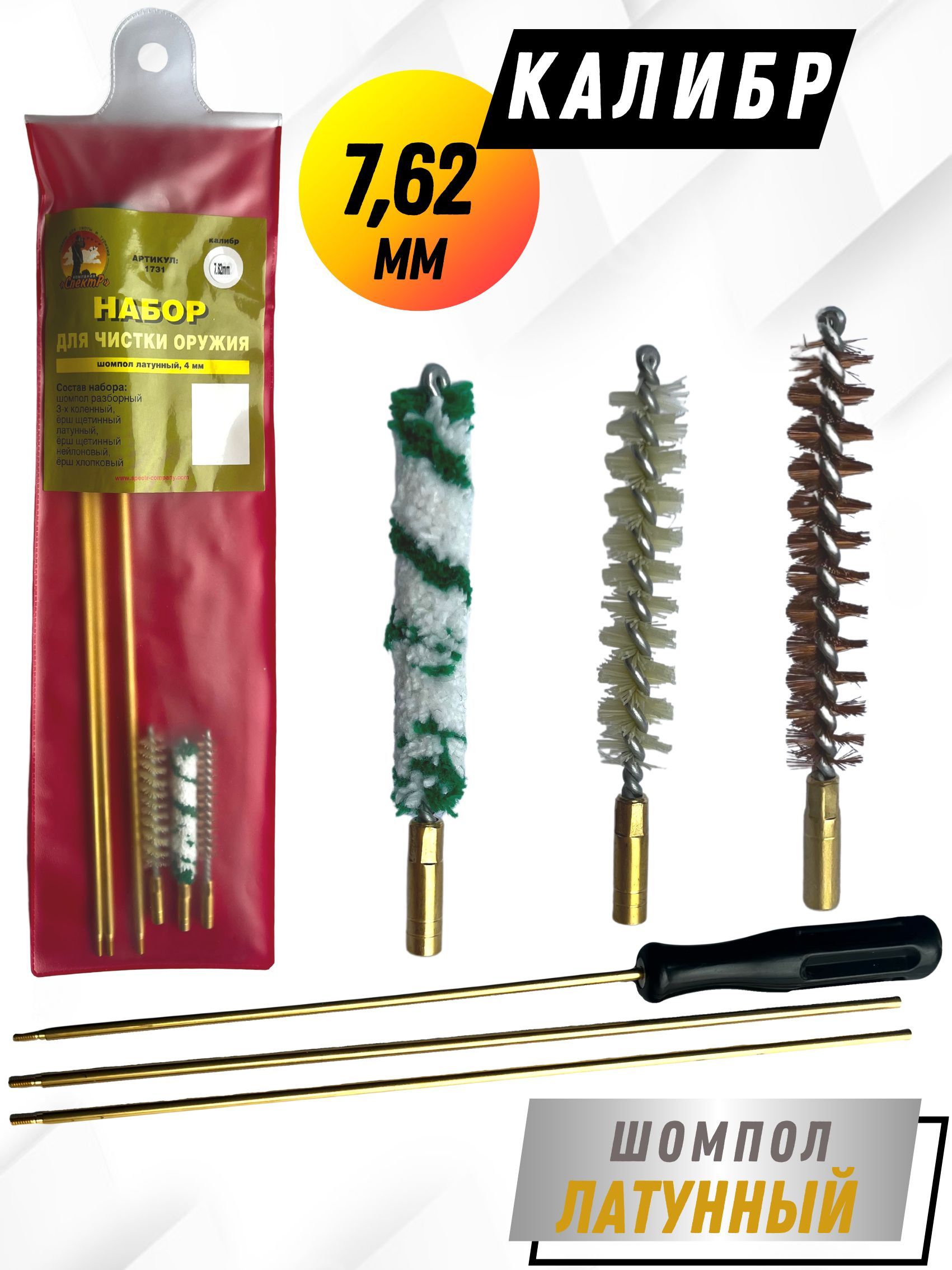 - Состав набора: шомпол, щетки(3шт), блистер.