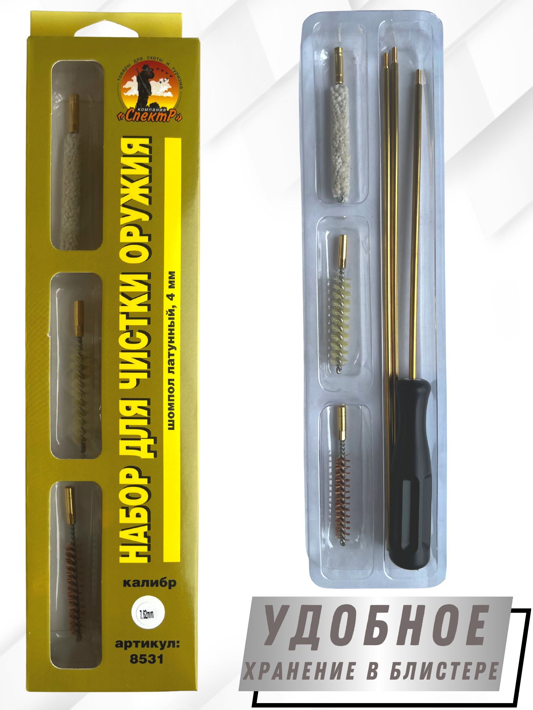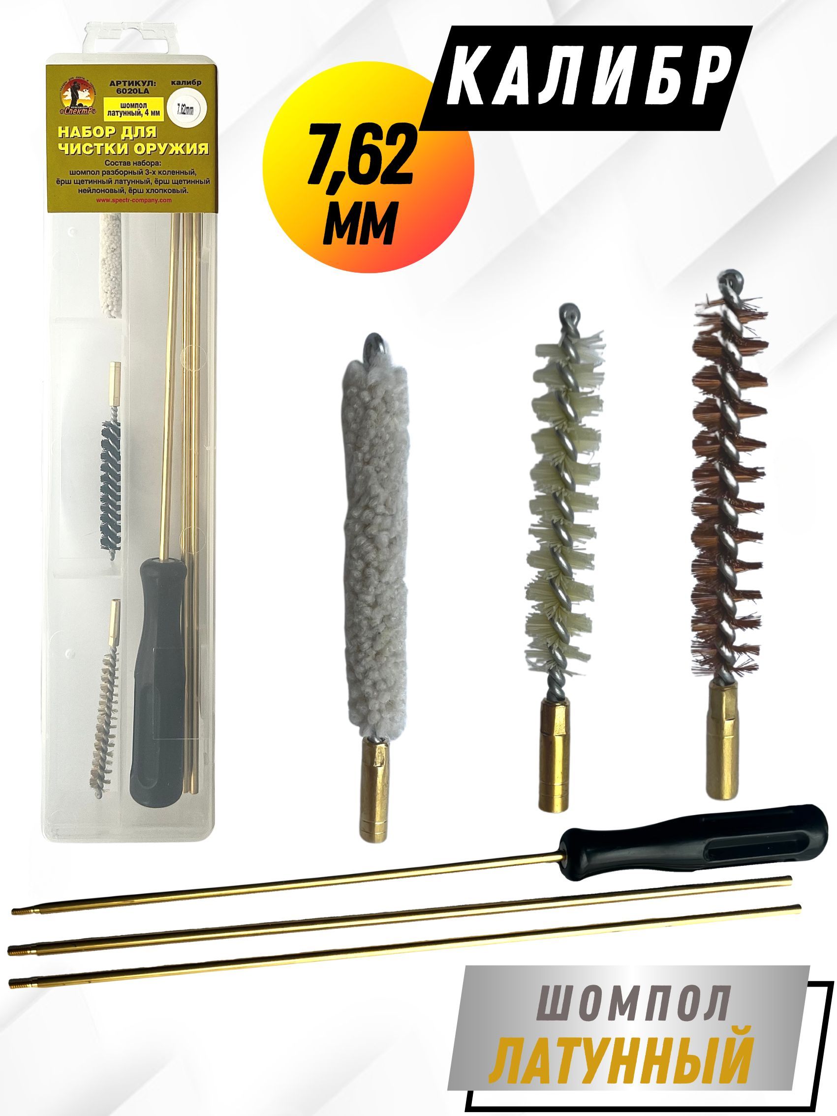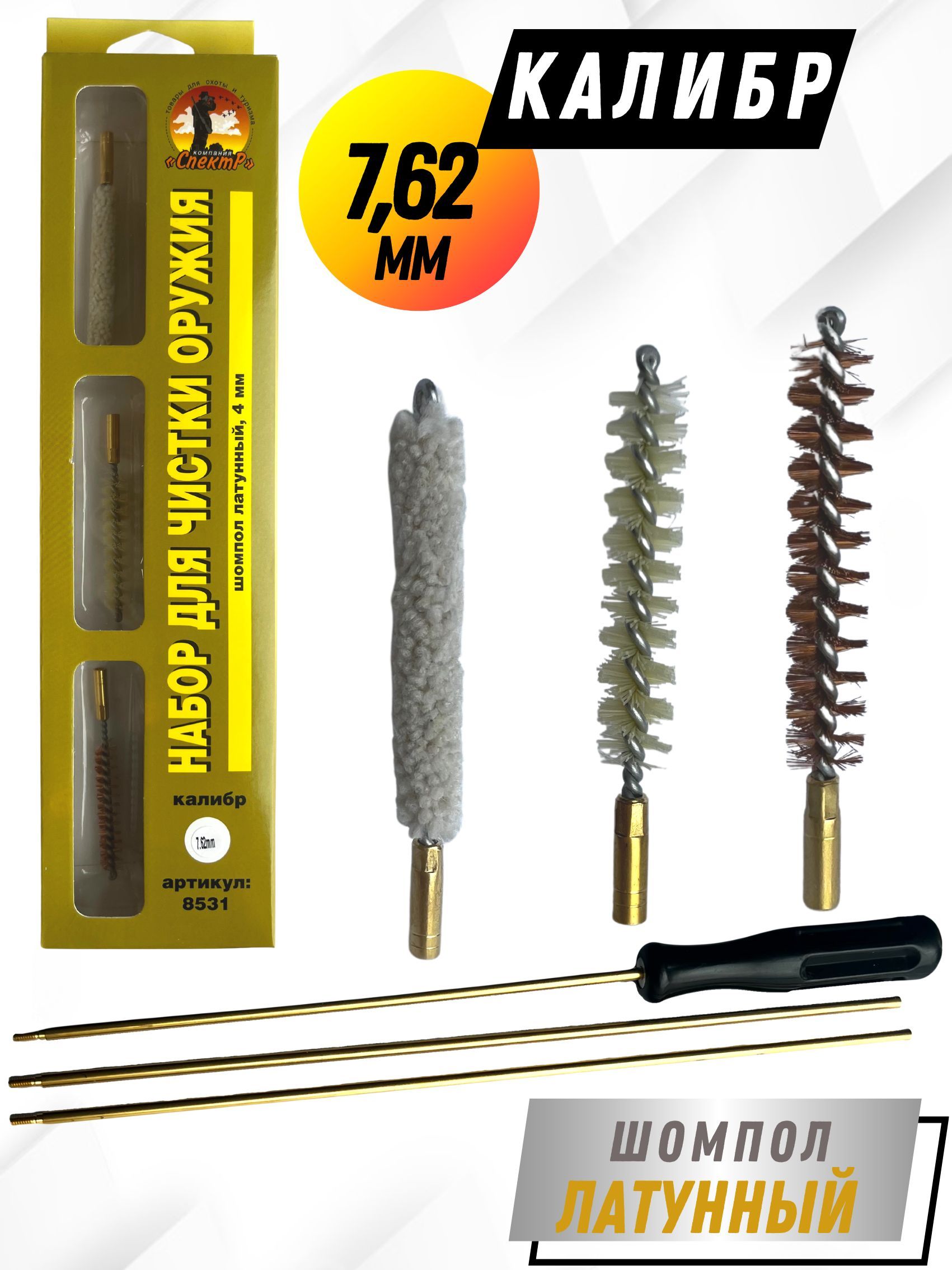 - Состав набора: шомпол, щетки(3шт), блистер.
