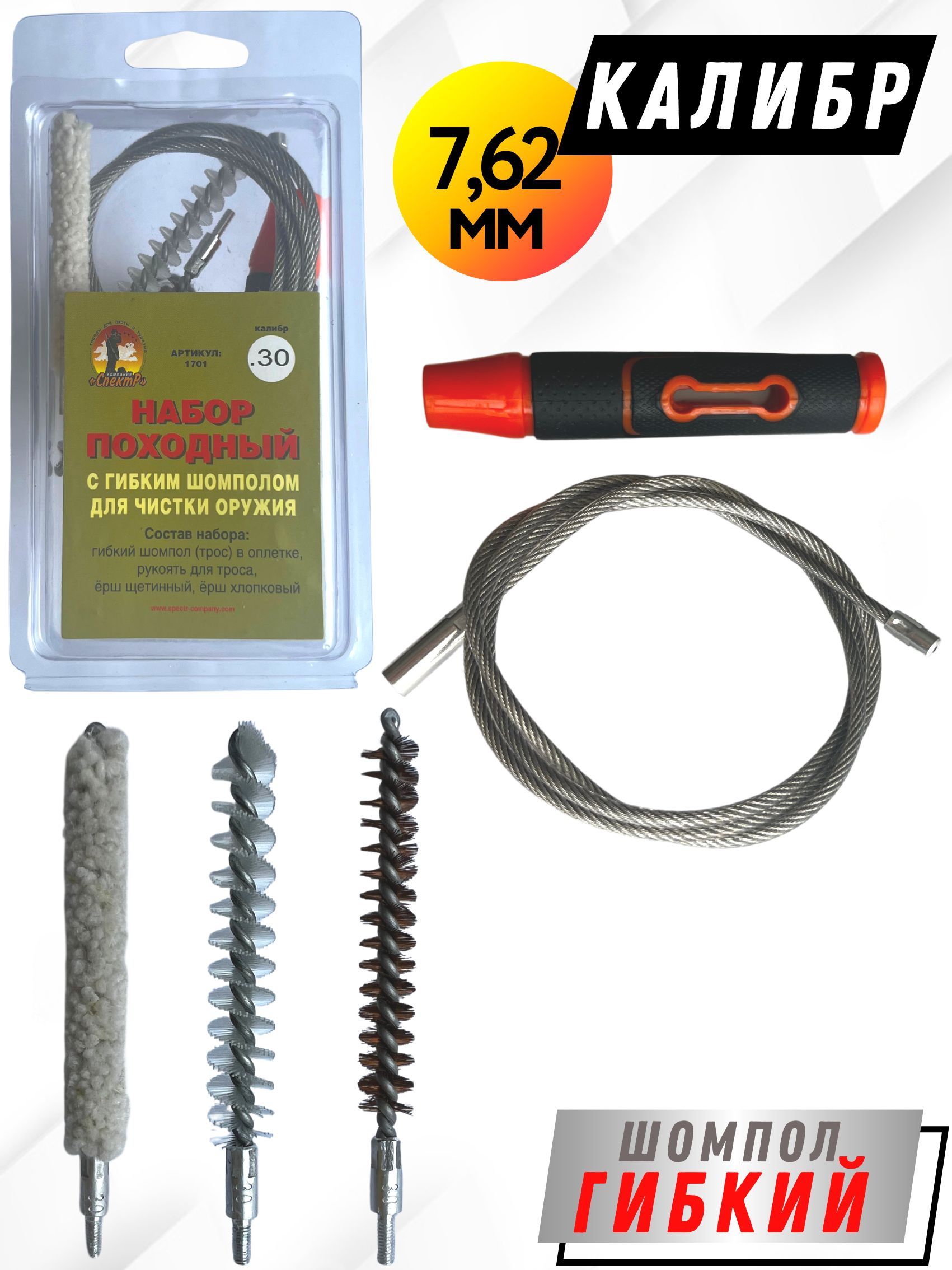 Набор для чистки оружия клб. 7,62мм ПОХОДНЫЙ №1 в блистере с гибким шомполом (1701- 30).