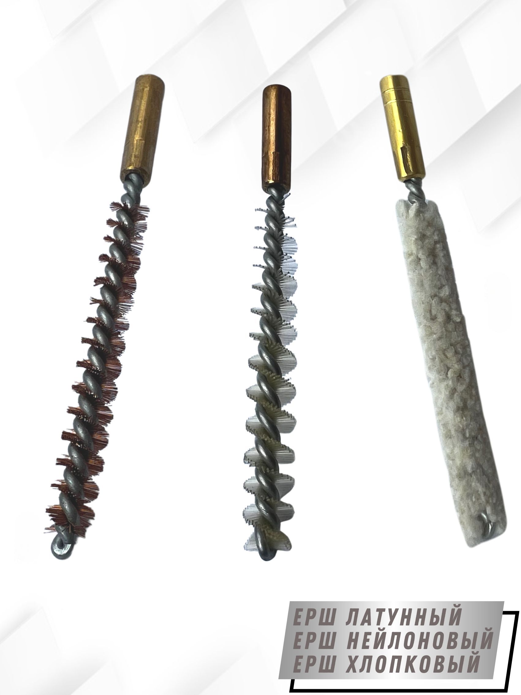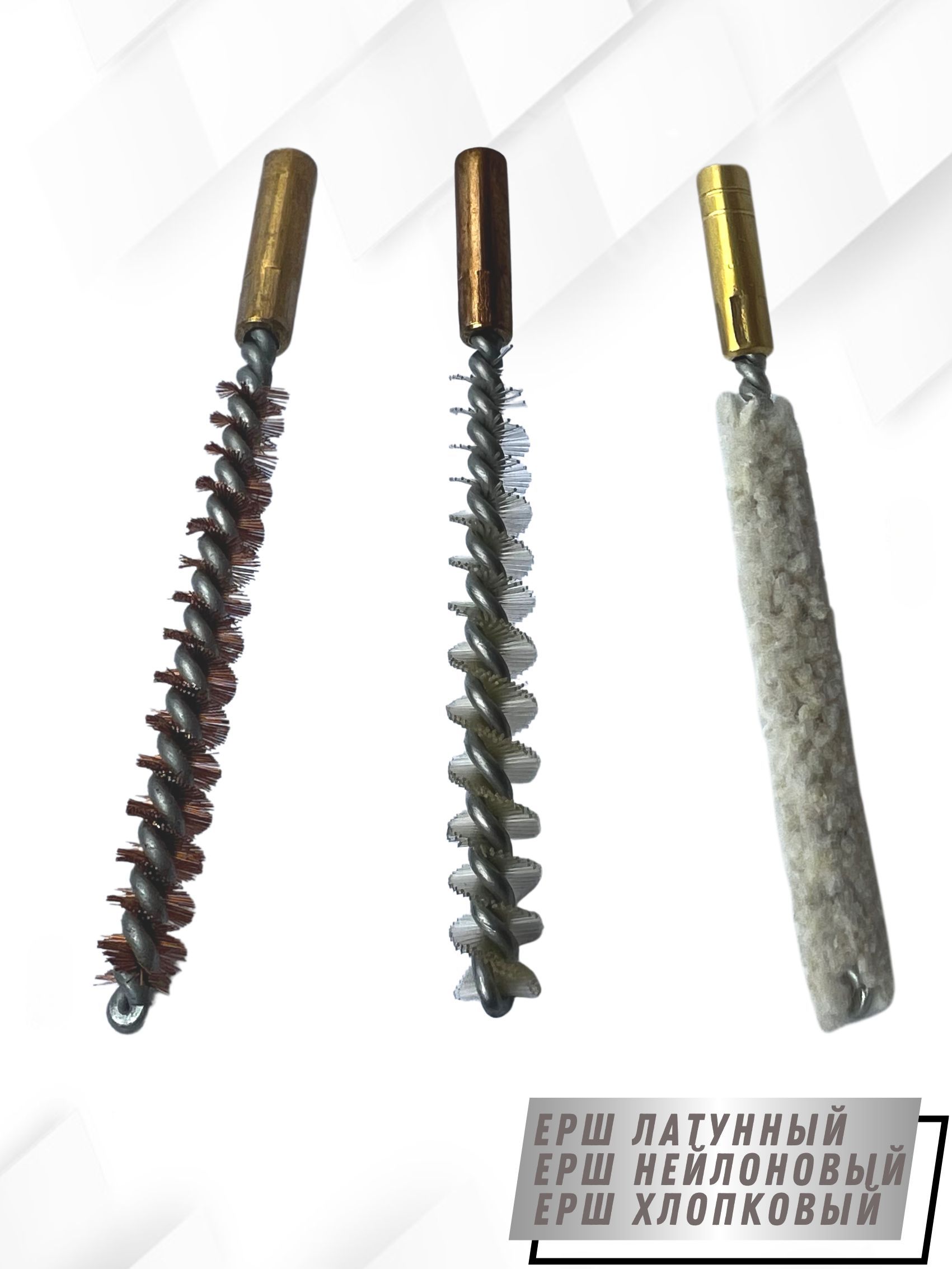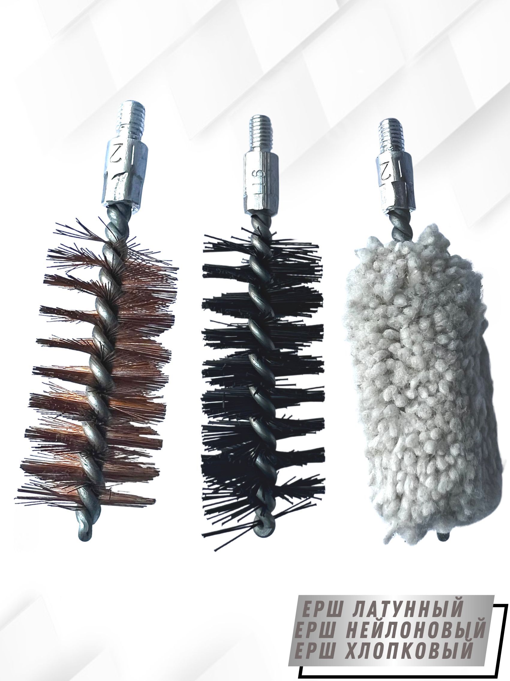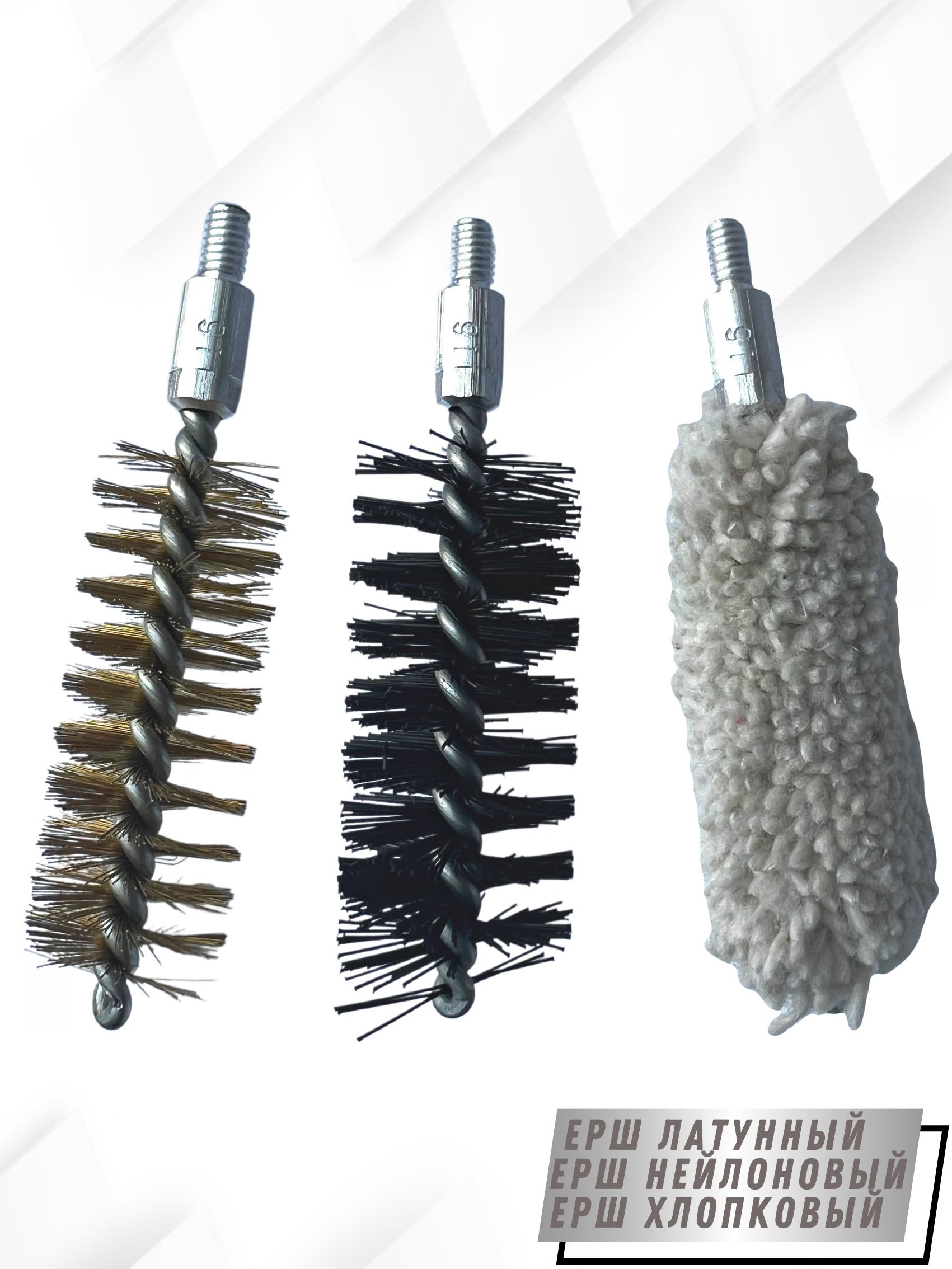 - Вид щеток: - ерш щетинный Латунный; - ерш щетинистый Нейлоновый; - ерш Хлопковый.