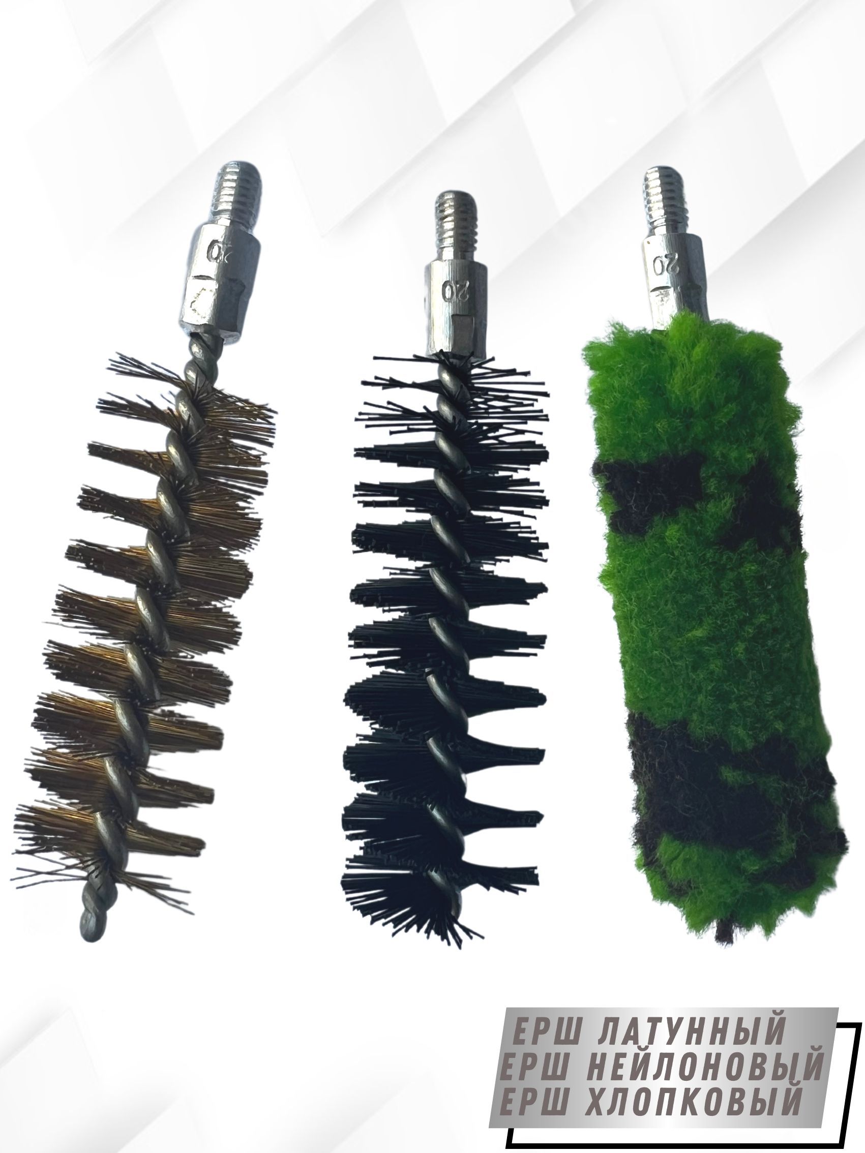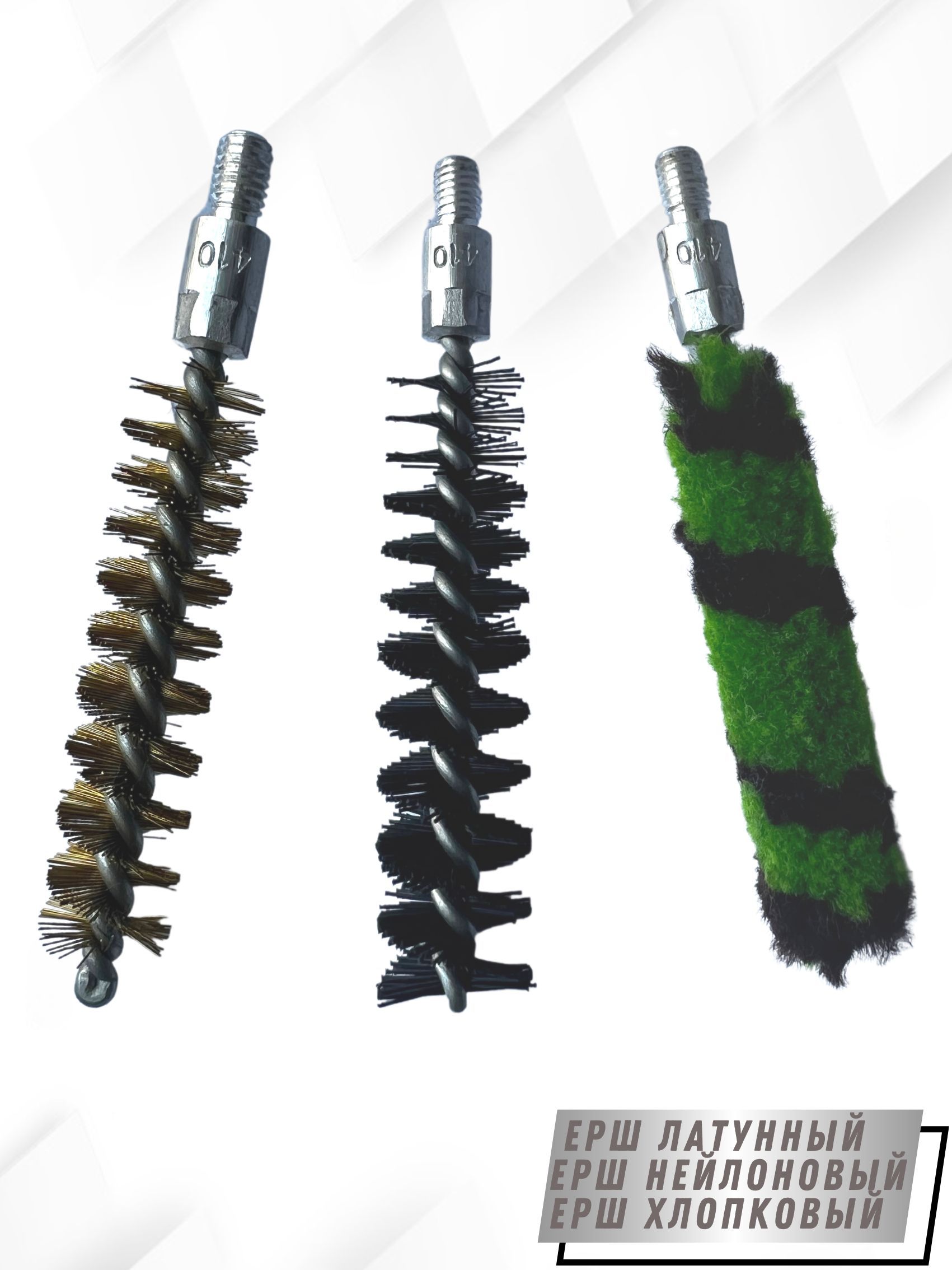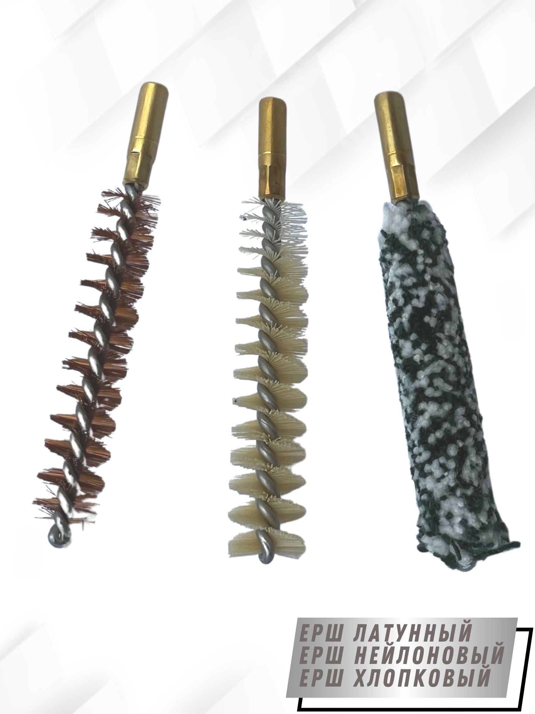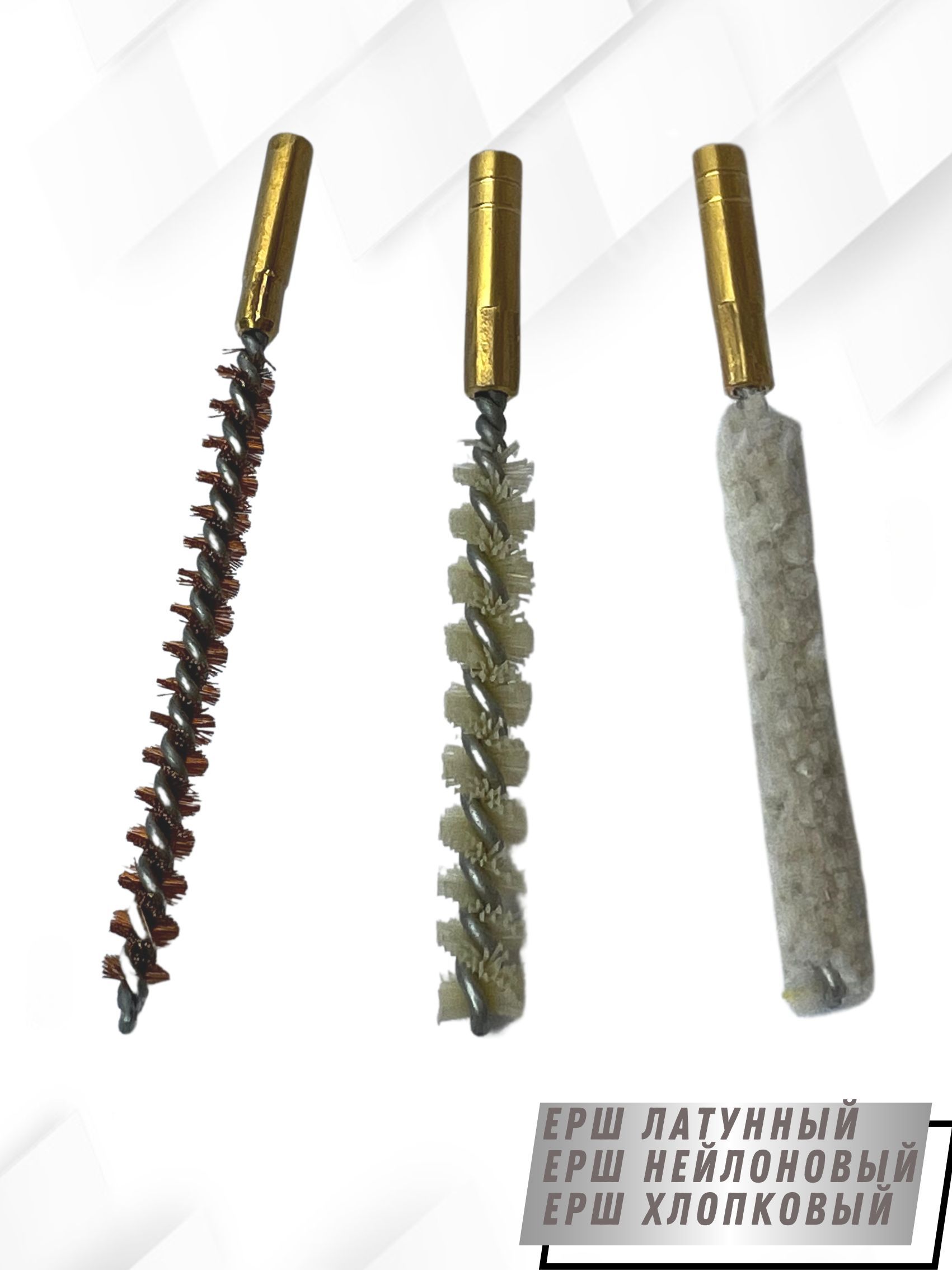 - Вид щеток: - ерш щетинный Латунный; - ерш щетинистый Нейлоновый; - ерш Хлопковый.