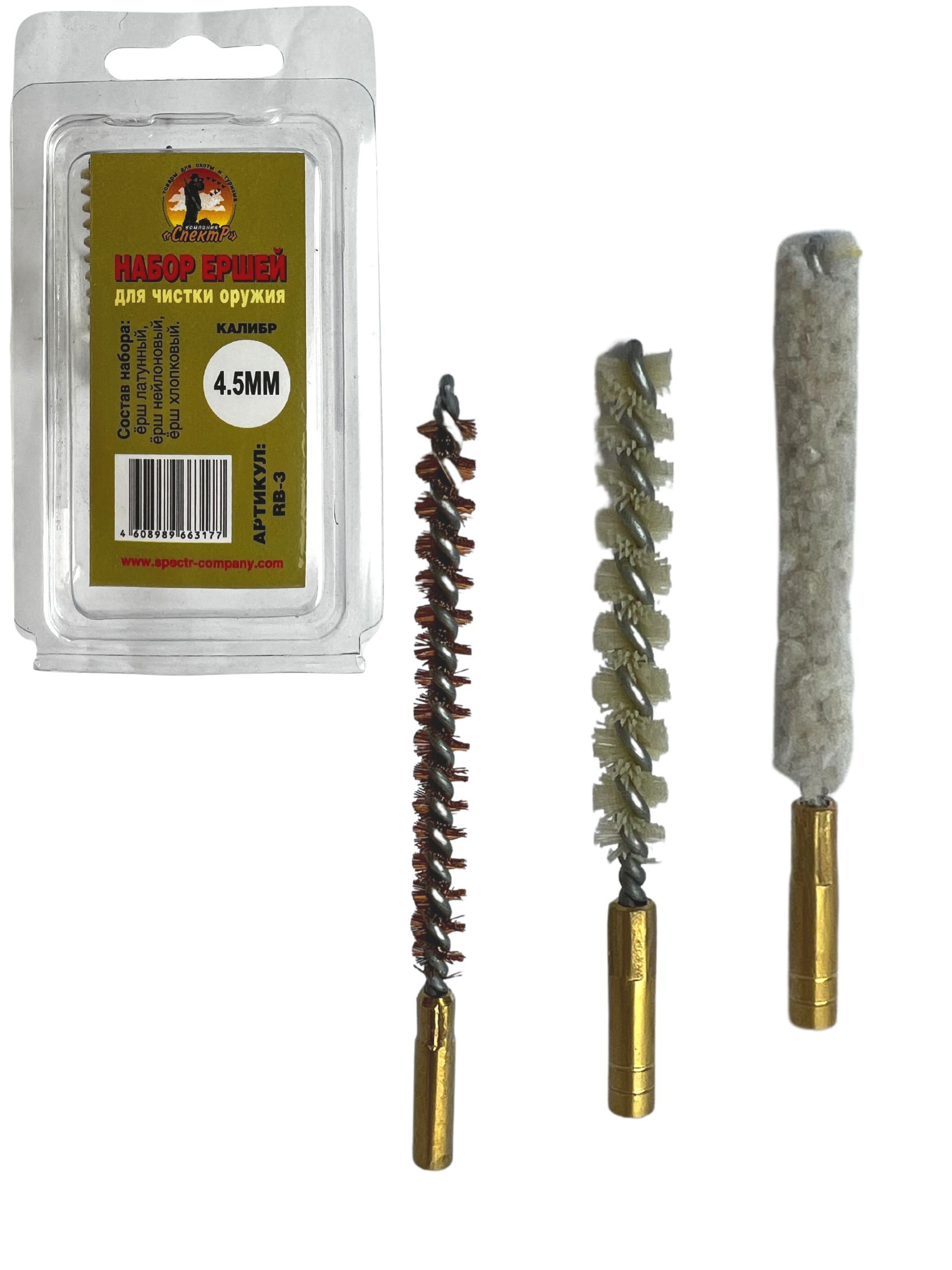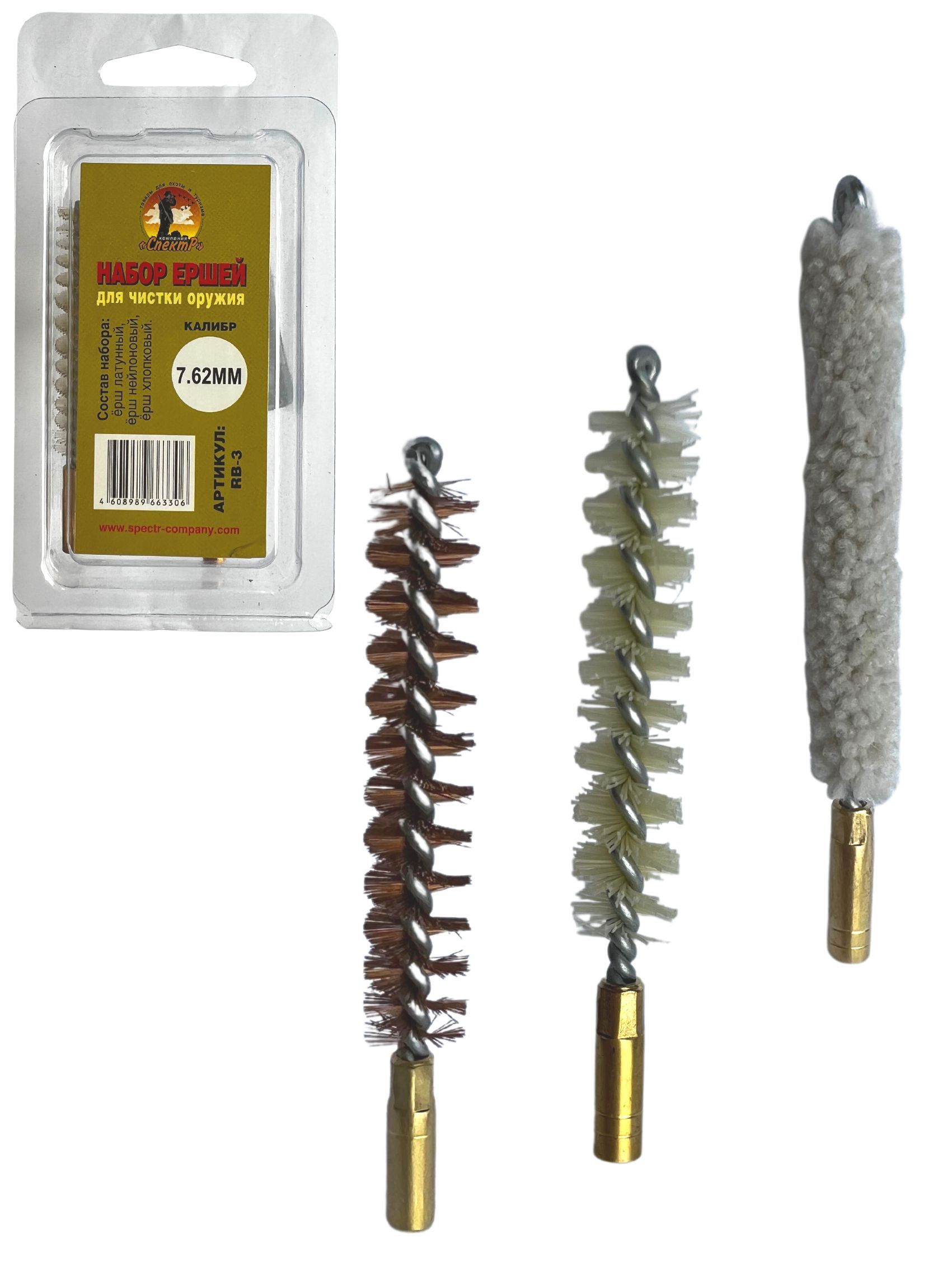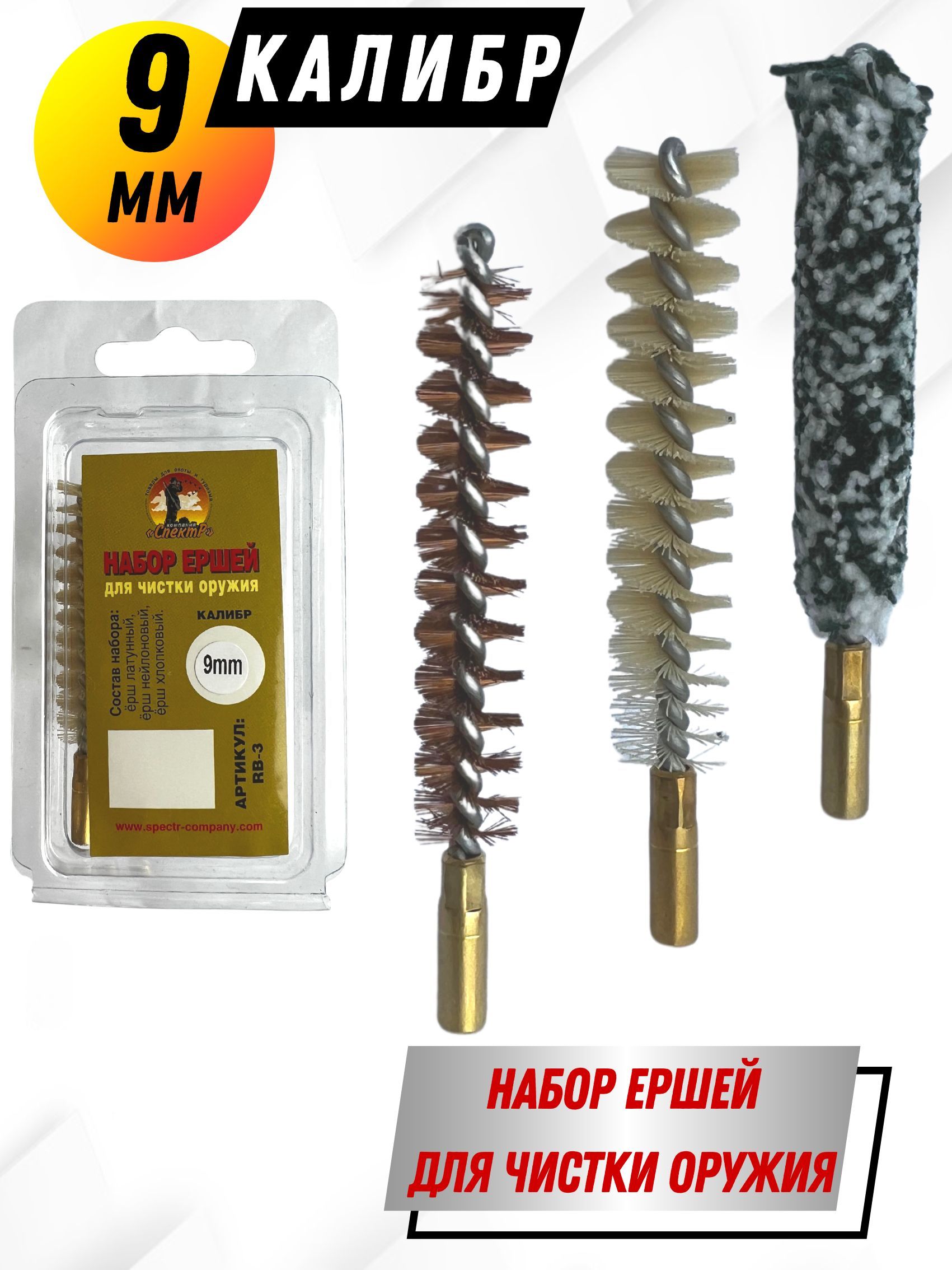 Выбирая Набор ершей производства Компании Спектр, вы сможете произвести качественную чистку, ваше оружие будет всегда готово к стрельбе, а эстетичный внешний вид послужит хорошим подарком любому стрелку. К набору необходимо приобрести шомпол и масло.