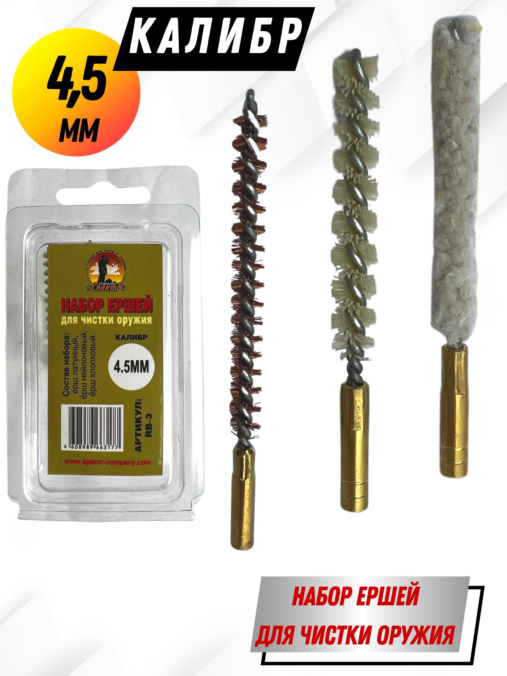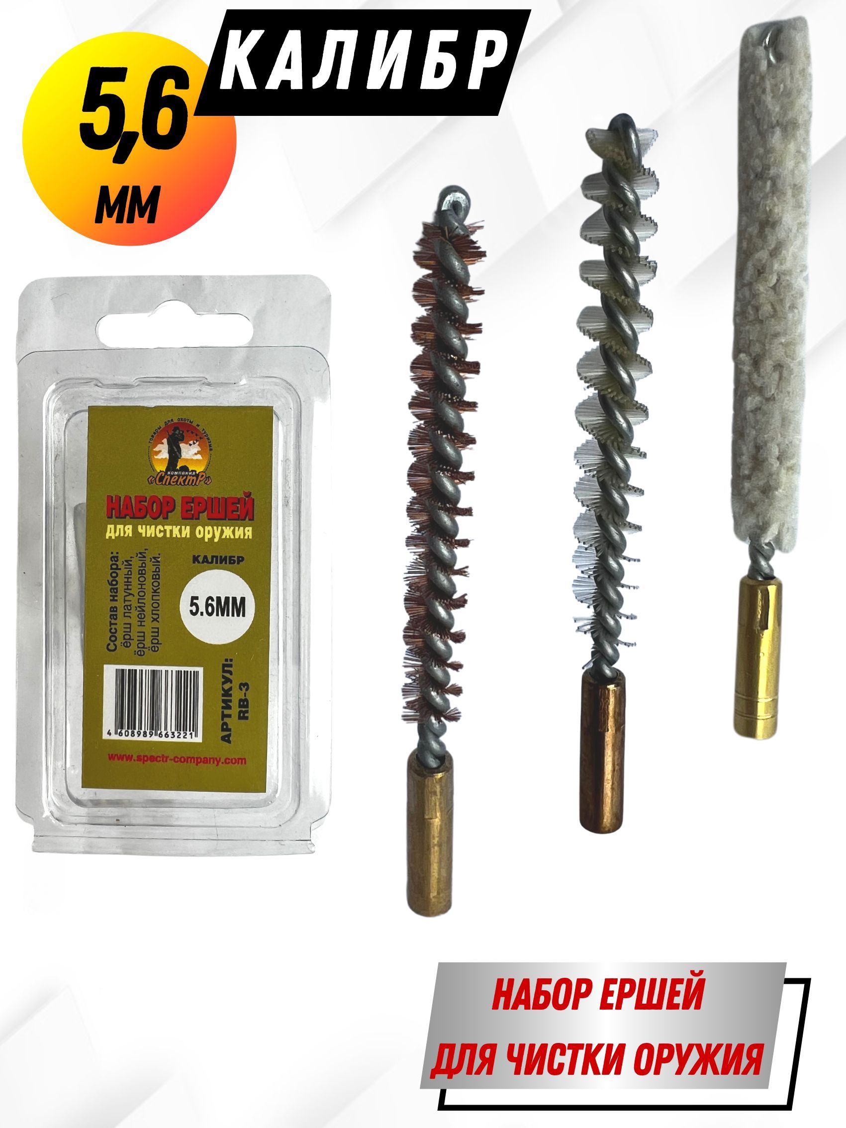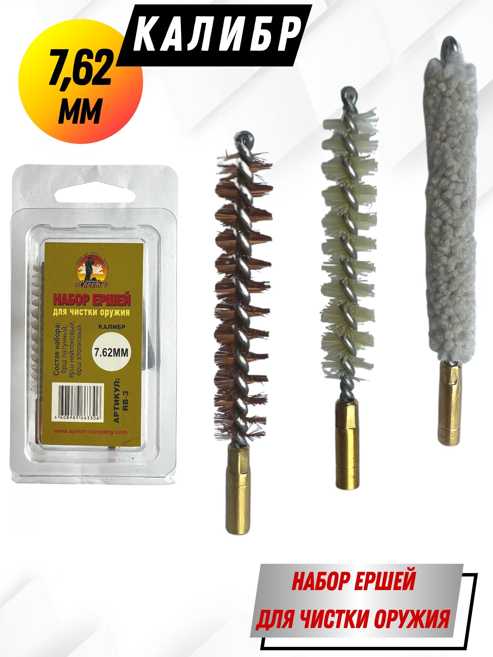 Выбирая Набор ершей производства Компании Спектр, вы сможете произвести качественную чистку, ваше оружие будет всегда готово к стрельбе, а эстетичный внешний вид послужит хорошим подарком любому стрелку. К набору необходимо приобрести шомпол и масло.
