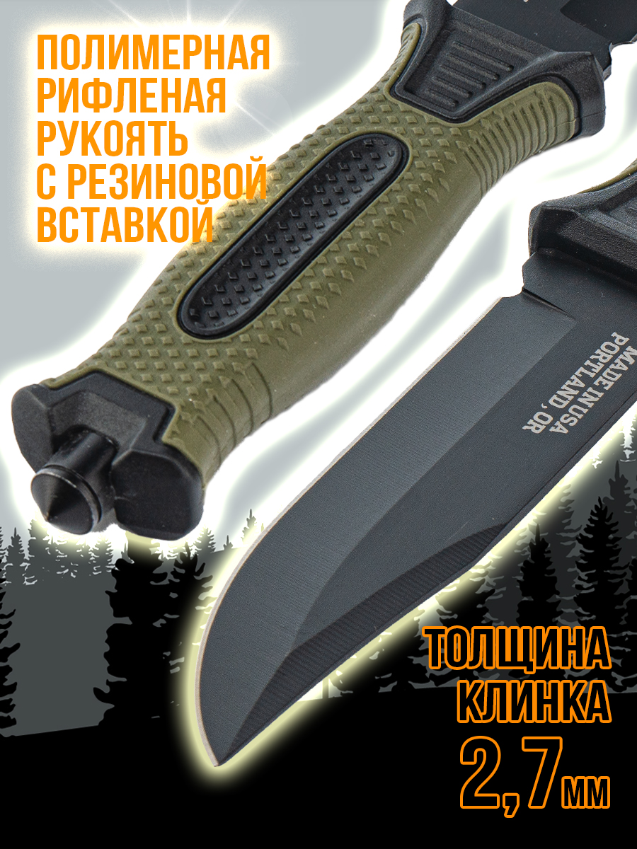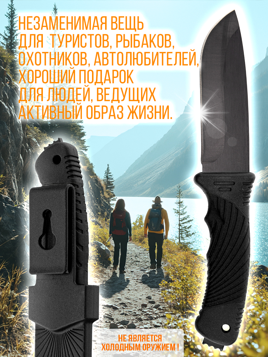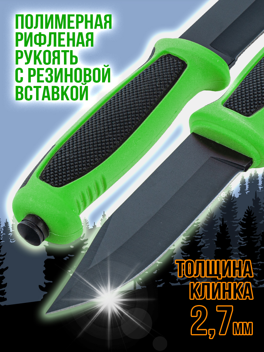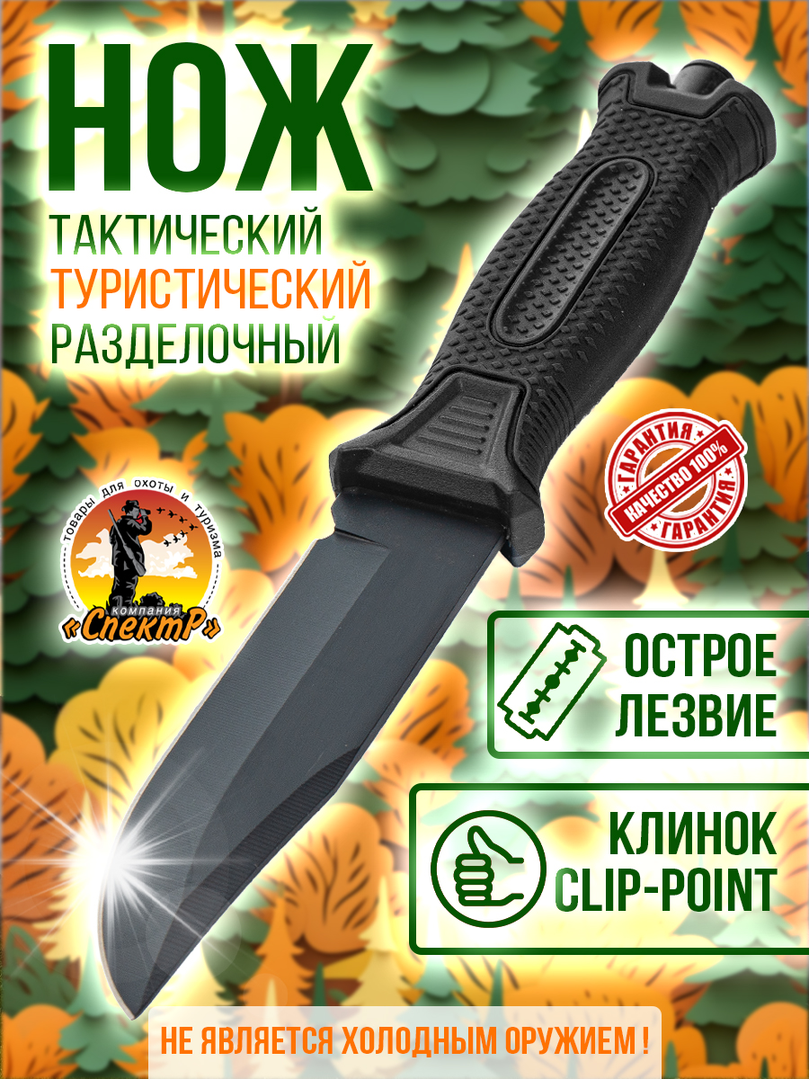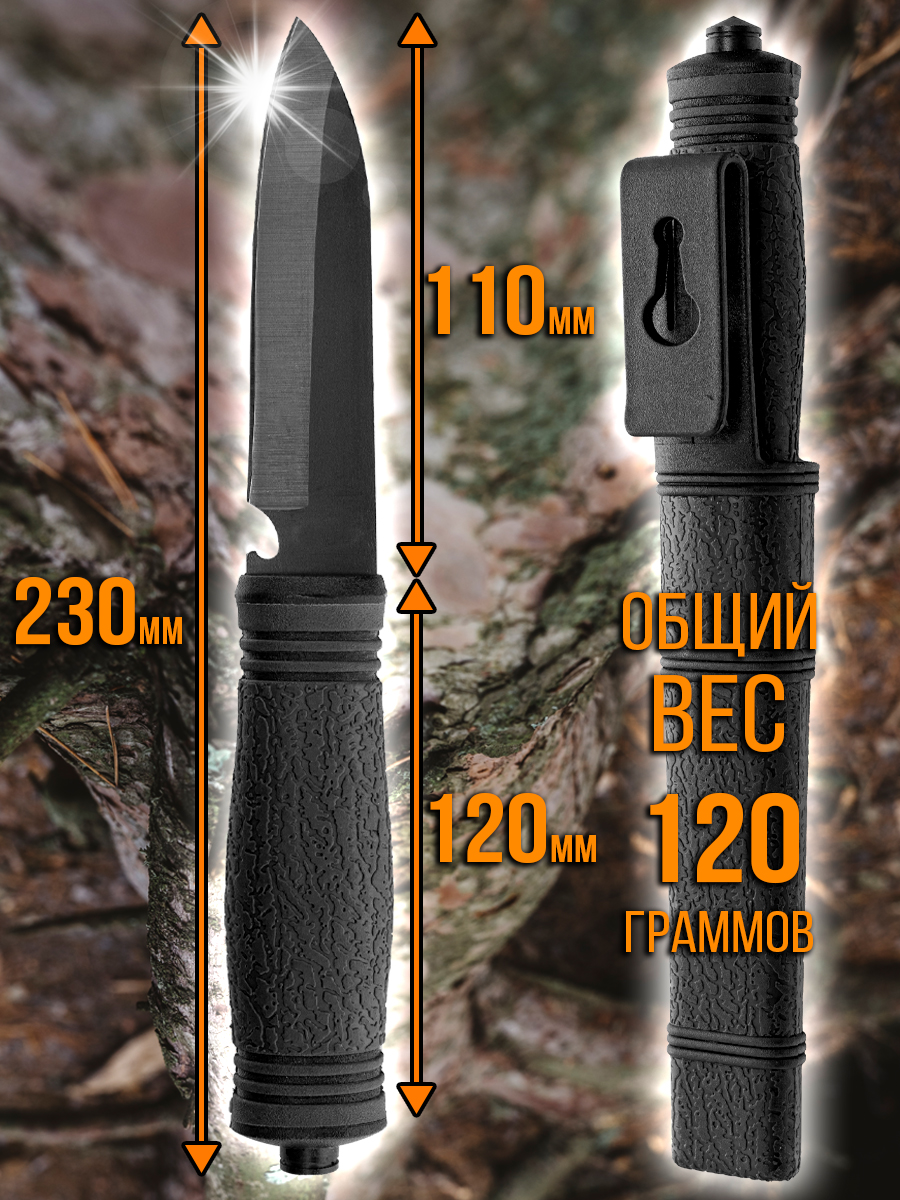 Модель 2958 – туристический, универсальный нож с фиксированным клинком по форме CLIP-POINT и стеклобоем. Клинок со скошенным к острию обухом, скос вогнутый. Сталь прочная, нержавеющая, износостойкая, окрашенная с нанесением рисунка. Легко и быстро поддается заточке, не боится коррозии. Пластиковая рукоять, с резиновой вставкой хорошо лежит в руке и не скользит. Стеклобой послужит хорошим помощником в непредвиденных ситуациях не только для обычных пользователей, но и для профессионалов спасателей. Пластиковые ножны с креплением под ремень, надежно фиксируют нож. Хорошо подойдет для хозяйственно бытовых нужд, кухонных работ, на пикнике, в лесу, на воде. Не один турист, охотник, рыбак не обойдется без ножа, который является предметом снаряжения и пригодится на все случаи жизни. Броский, вызывающий внешний вид, послужит хорошим подарком, для поклонников активного образа жизни.