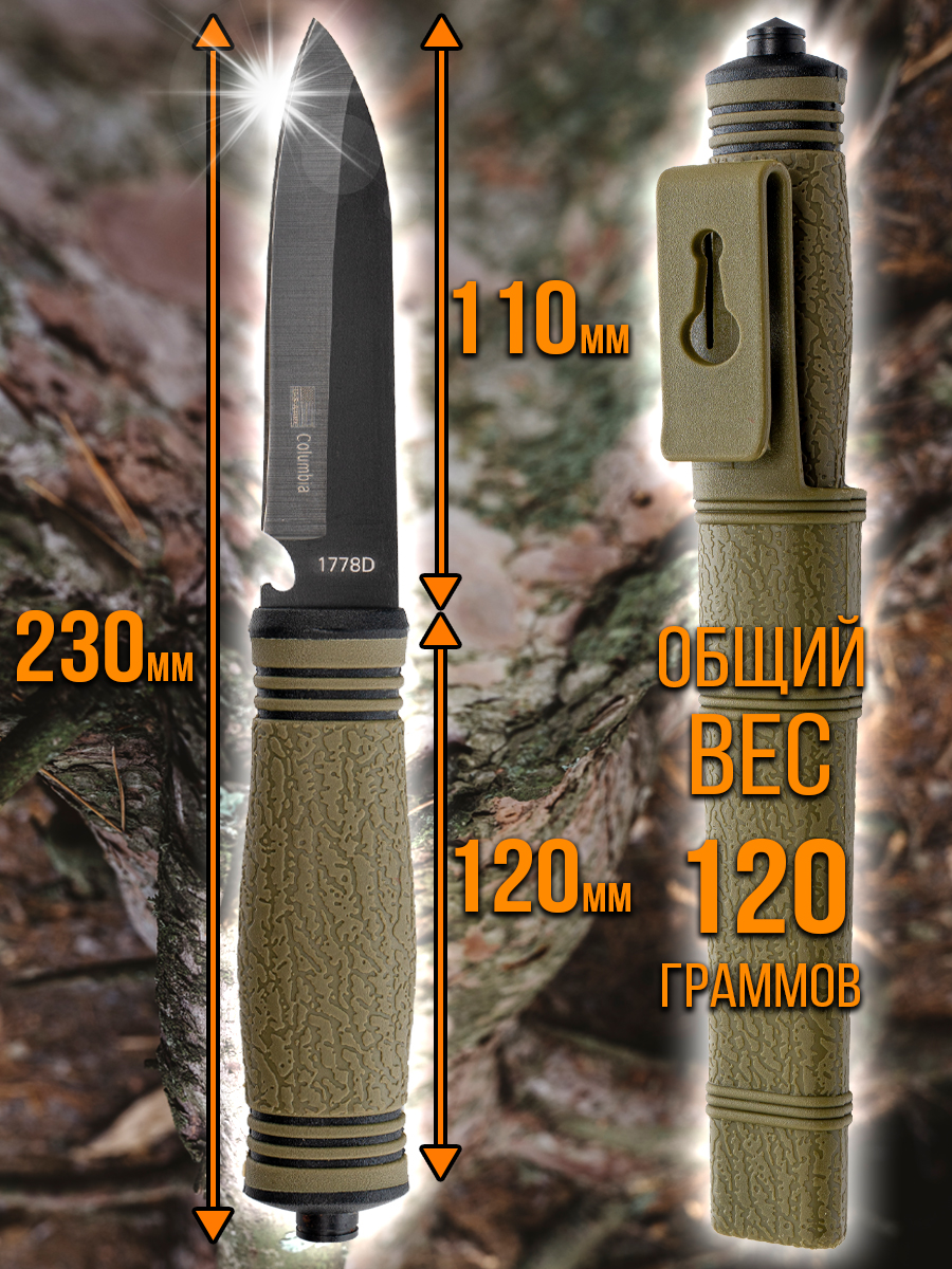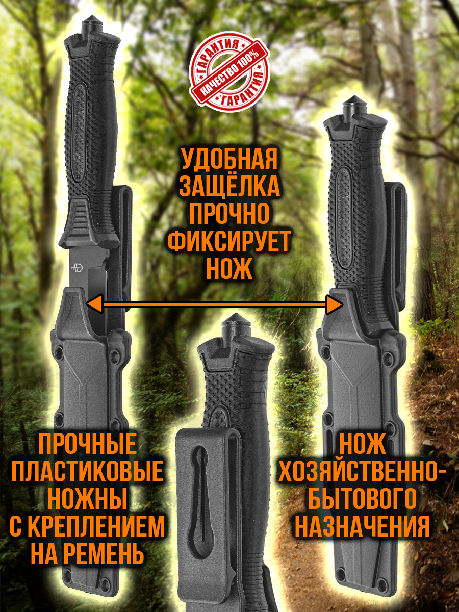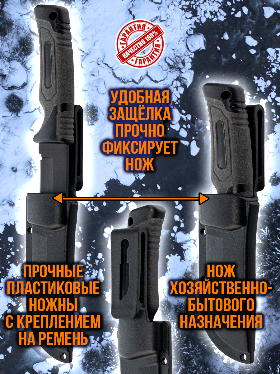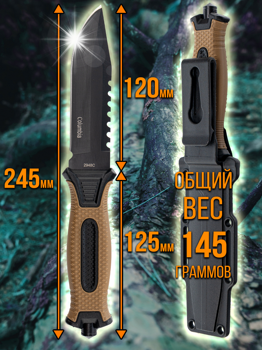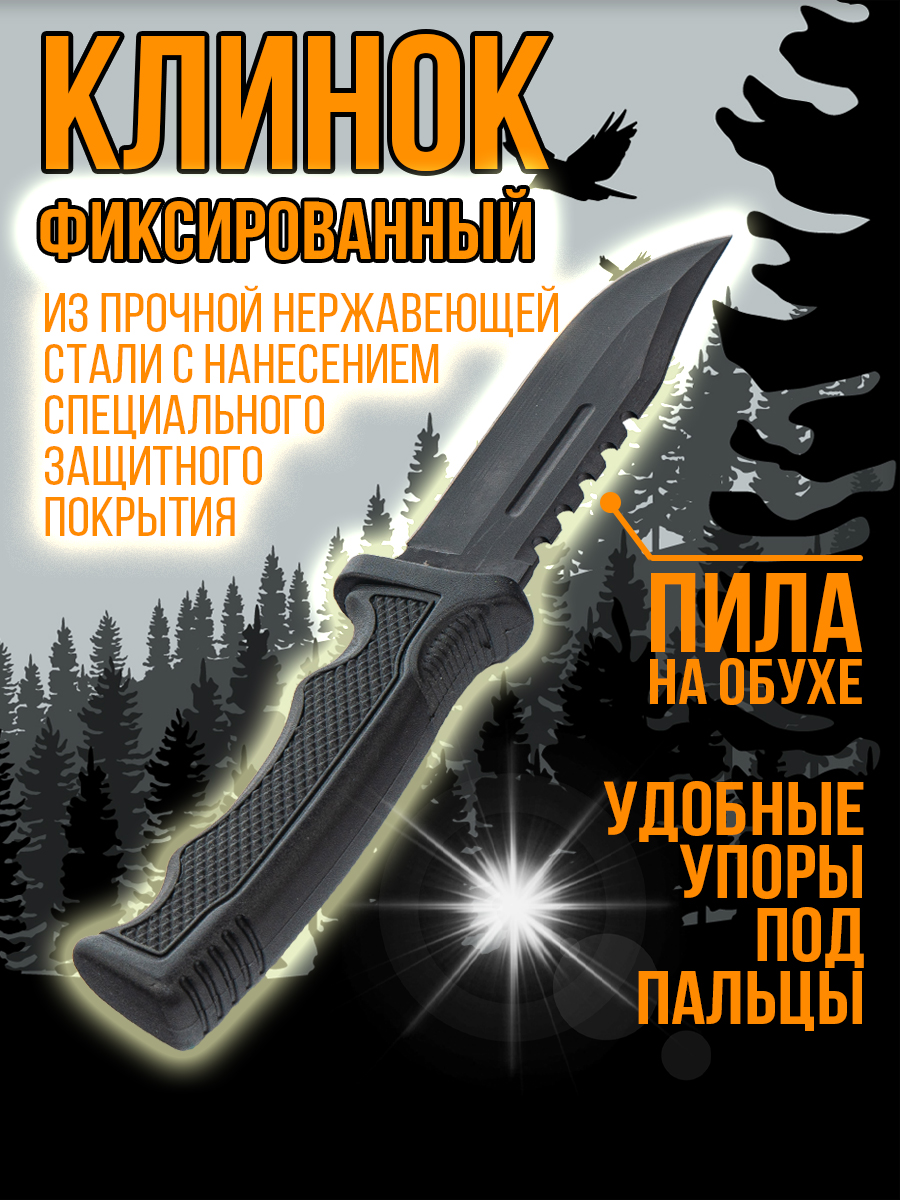 Модель 2958 – туристический, универсальный нож с фиксированным клинком по форме CLIP-POINT и стеклобоем. Клинок со скошенным к острию обухом, скос вогнутый. Сталь прочная, нержавеющая, износостойкая, окрашенная с нанесением рисунка. Легко и быстро поддается заточке, не боится коррозии. Пластиковая рукоять, с резиновой вставкой хорошо лежит в руке и не скользит. Стеклобой послужит хорошим помощником в непредвиденных ситуациях не только для обычных пользователей, но и для профессионалов спасателей. Пластиковые ножны с креплением под ремень, надежно фиксируют нож. Хорошо подойдет для хозяйственно бытовых нужд, кухонных работ, на пикнике, в лесу, на воде. Не один турист, охотник, рыбак не обойдется без ножа, который является предметом снаряжения и пригодится на все случаи жизни. Броский, вызывающий внешний вид, послужит хорошим подарком, для поклонников активного образа жизни.