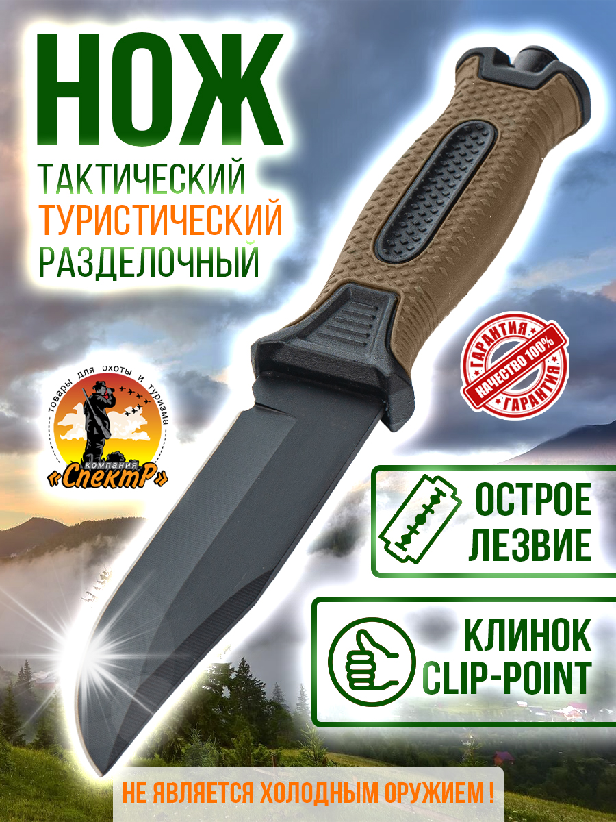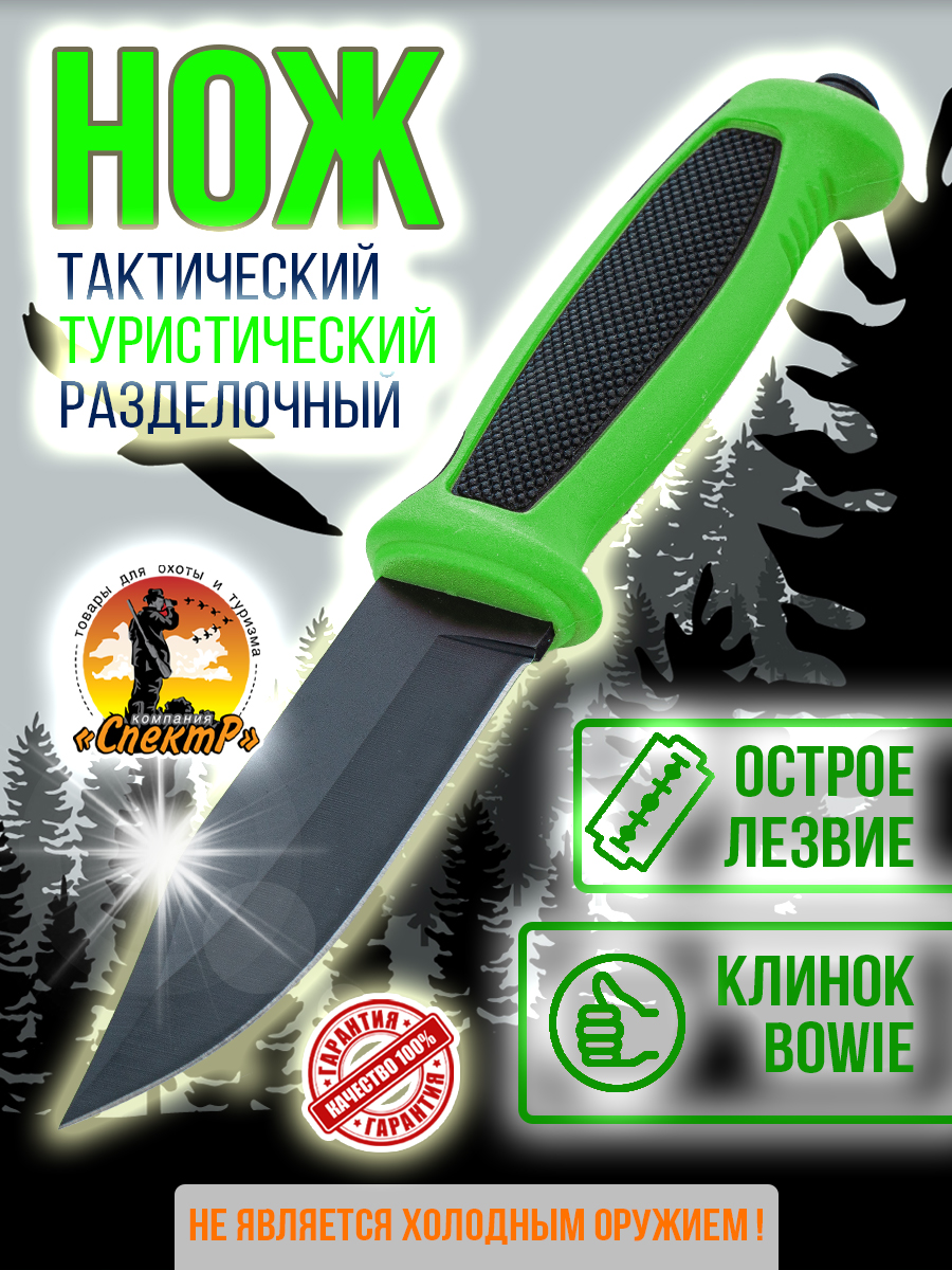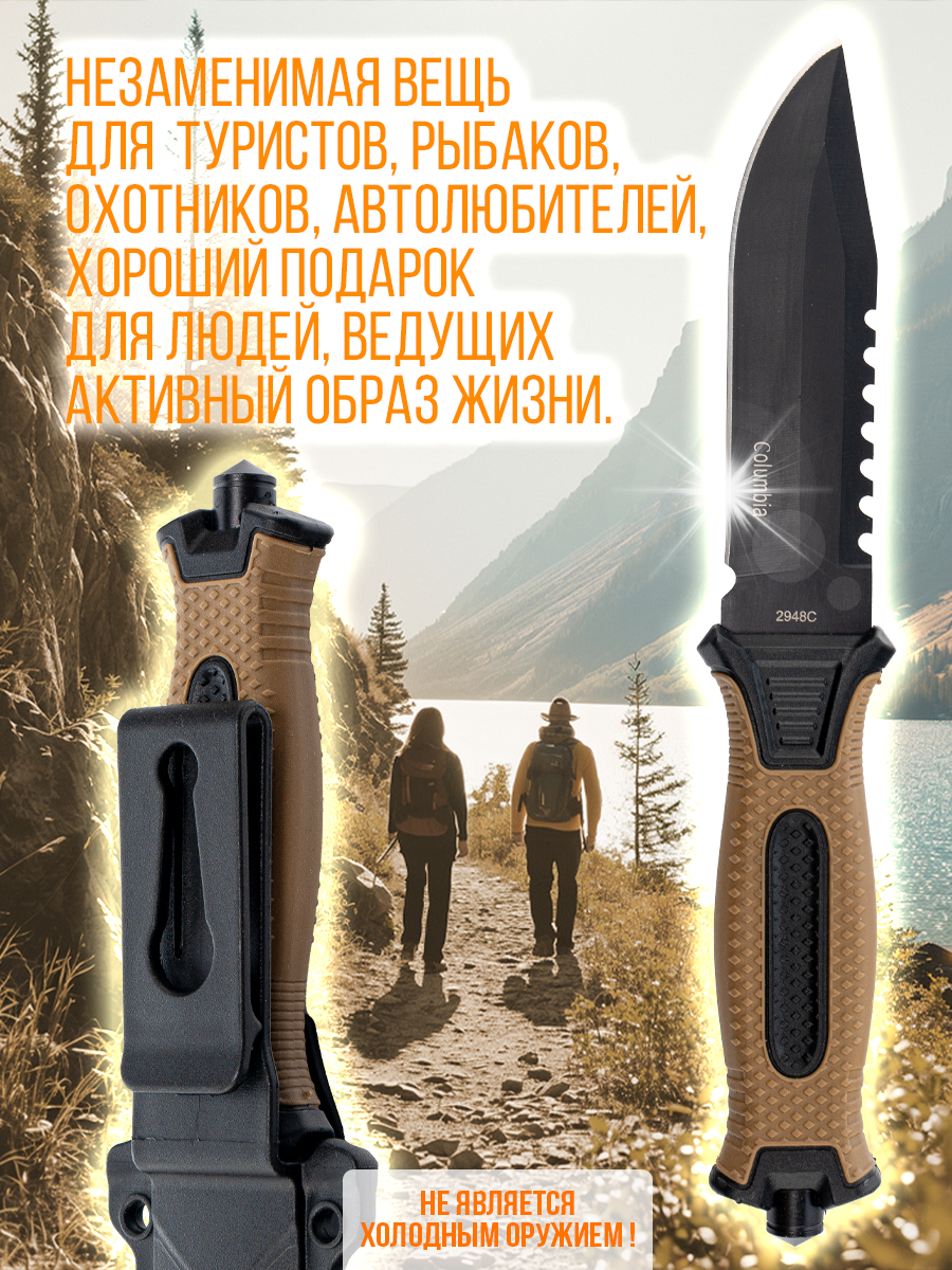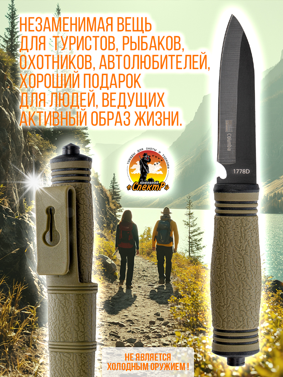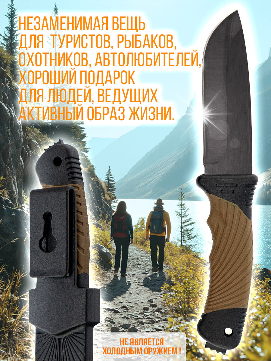 Модель 2958 – туристический, универсальный нож с фиксированным клинком по форме CLIP-POINT и стеклобоем. Клинок со скошенным к острию обухом, скос вогнутый. Сталь прочная, нержавеющая, износостойкая, окрашенная с нанесением рисунка. Легко и быстро поддается заточке, не боится коррозии. Пластиковая рукоять, с резиновой вставкой хорошо лежит в руке и не скользит. Стеклобой послужит хорошим помощником в непредвиденных ситуациях не только для обычных пользователей, но и для профессионалов спасателей. Пластиковые ножны с креплением под ремень, надежно фиксируют нож. Хорошо подойдет для хозяйственно бытовых нужд, кухонных работ, на пикнике, в лесу, на воде. Не один турист, охотник, рыбак не обойдется без ножа, который является предметом снаряжения и пригодится на все случаи жизни. Броский, вызывающий внешний вид, послужит хорошим подарком, для поклонников активного образа жизни.