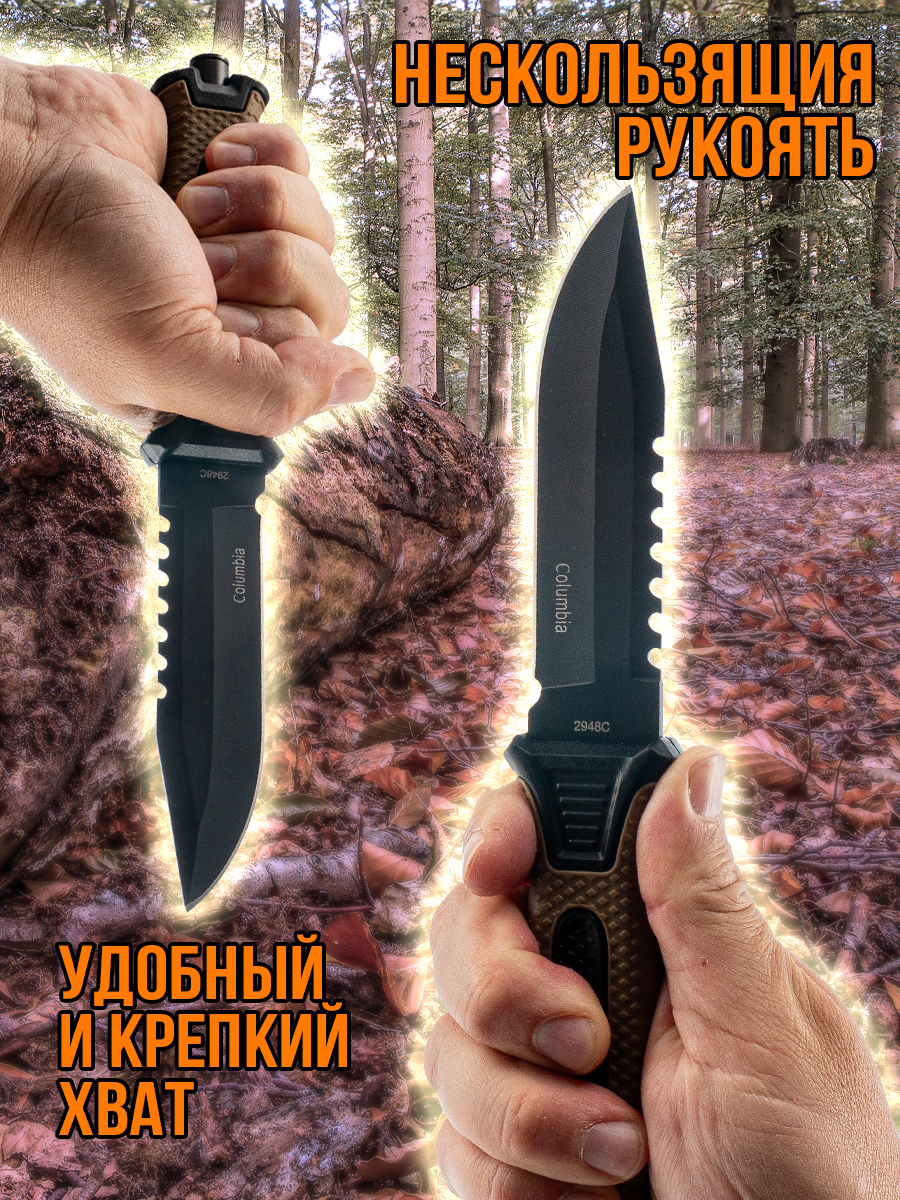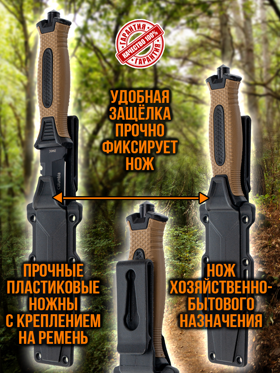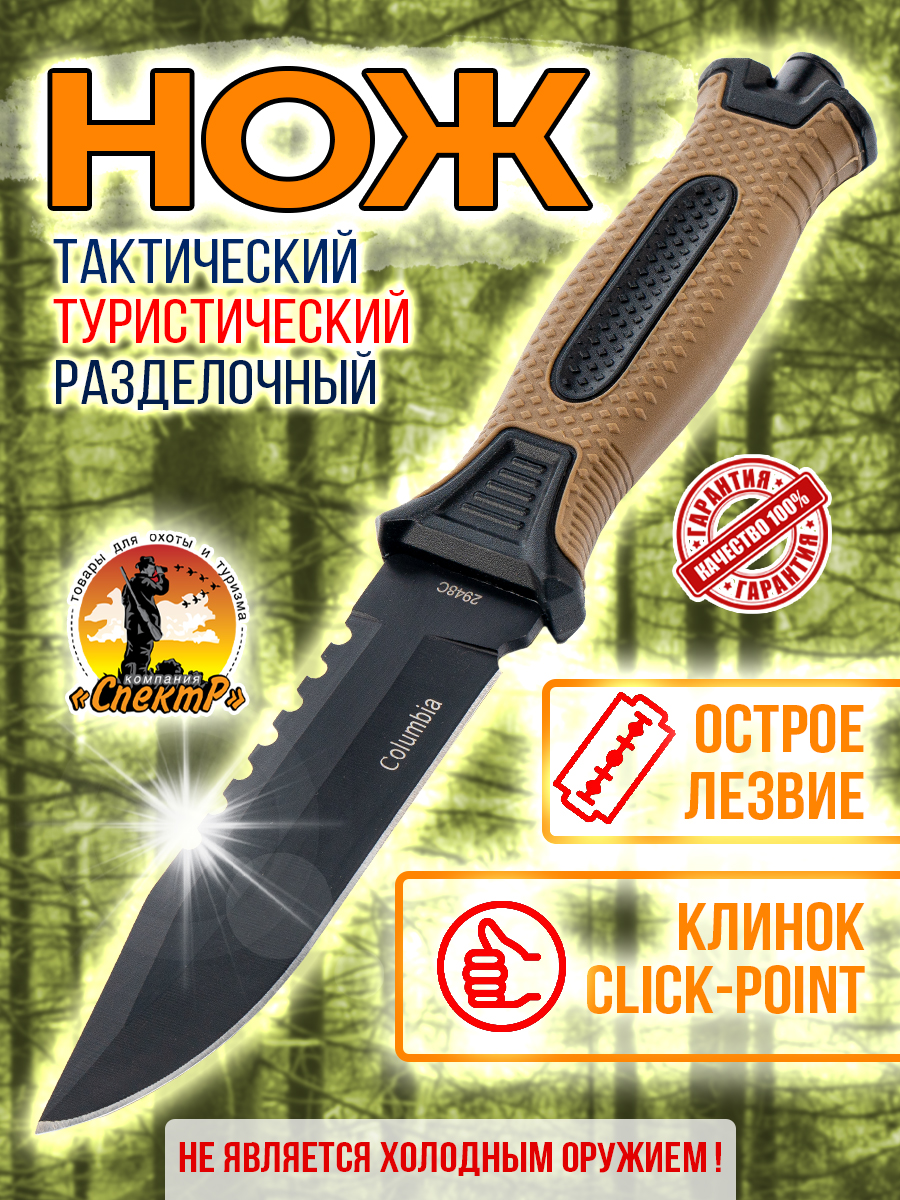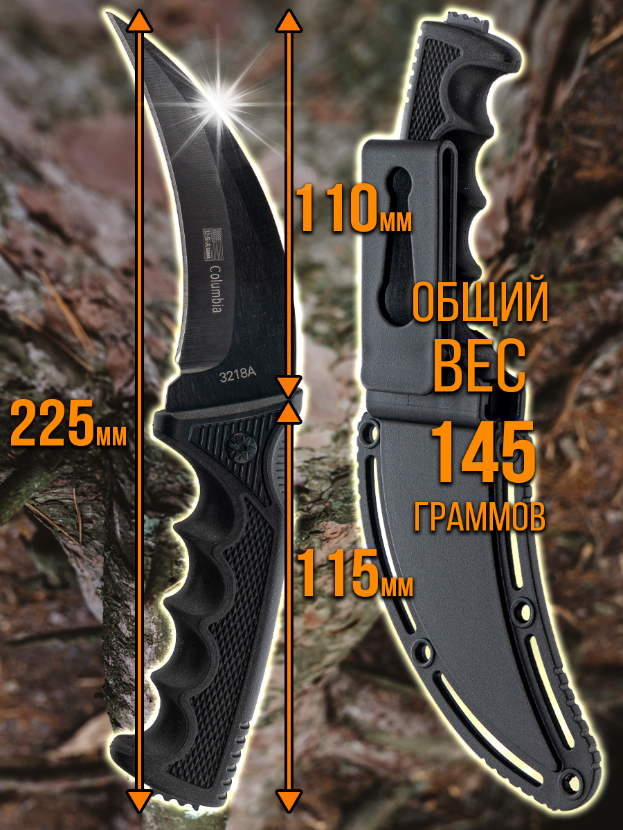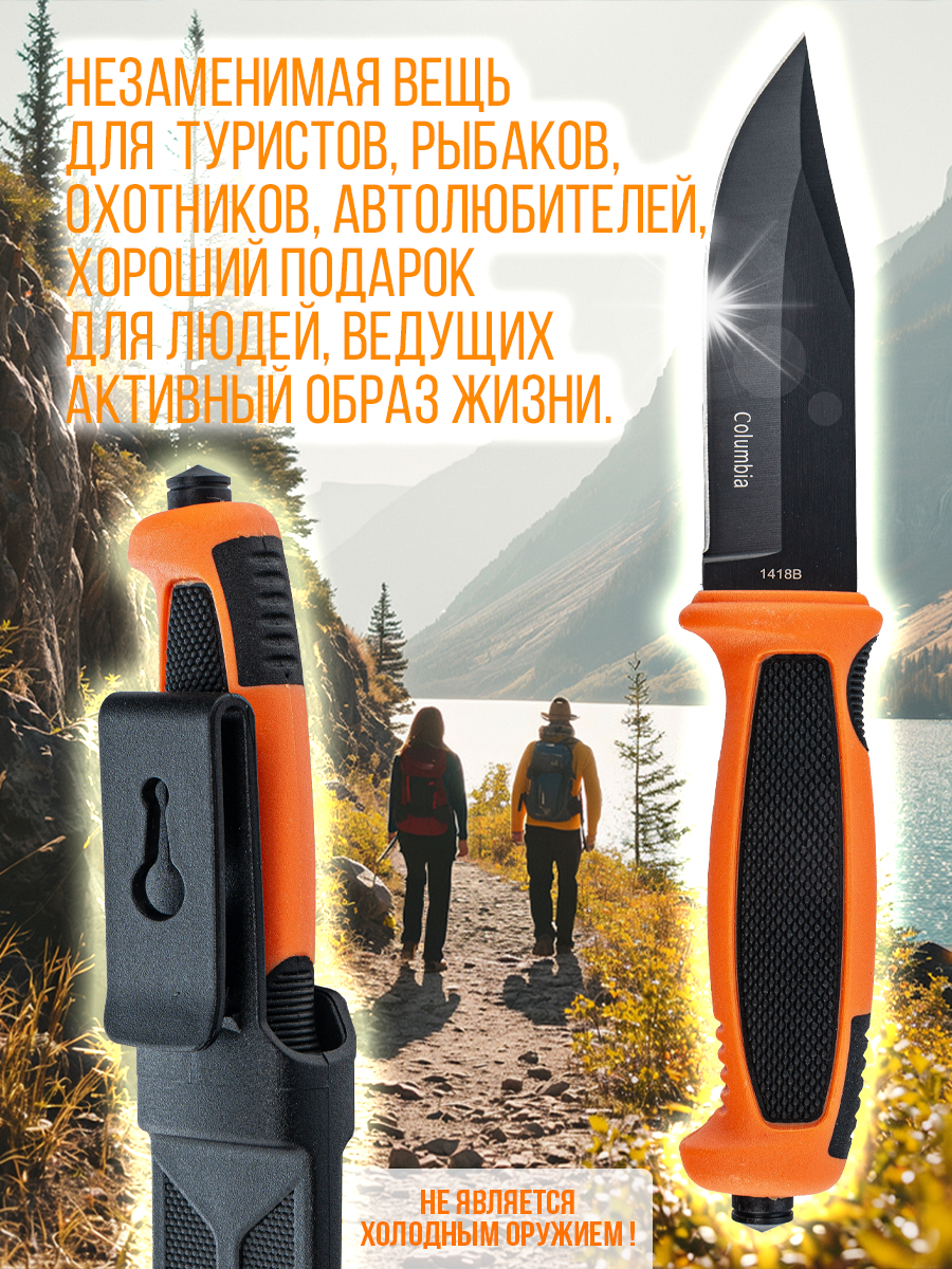 Модель 2958 – туристический, универсальный нож с фиксированным клинком по форме CLIP-POINT и стеклобоем. Клинок со скошенным к острию обухом, скос вогнутый. Сталь прочная, нержавеющая, износостойкая, окрашенная с нанесением рисунка. Легко и быстро поддается заточке, не боится коррозии. Пластиковая рукоять, с резиновой вставкой хорошо лежит в руке и не скользит. Стеклобой послужит хорошим помощником в непредвиденных ситуациях не только для обычных пользователей, но и для профессионалов спасателей. Пластиковые ножны с креплением под ремень, надежно фиксируют нож. Хорошо подойдет для хозяйственно бытовых нужд, кухонных работ, на пикнике, в лесу, на воде. Не один турист, охотник, рыбак не обойдется без ножа, который является предметом снаряжения и пригодится на все случаи жизни. Броский, вызывающий внешний вид, послужит хорошим подарком, для поклонников активного образа жизни.