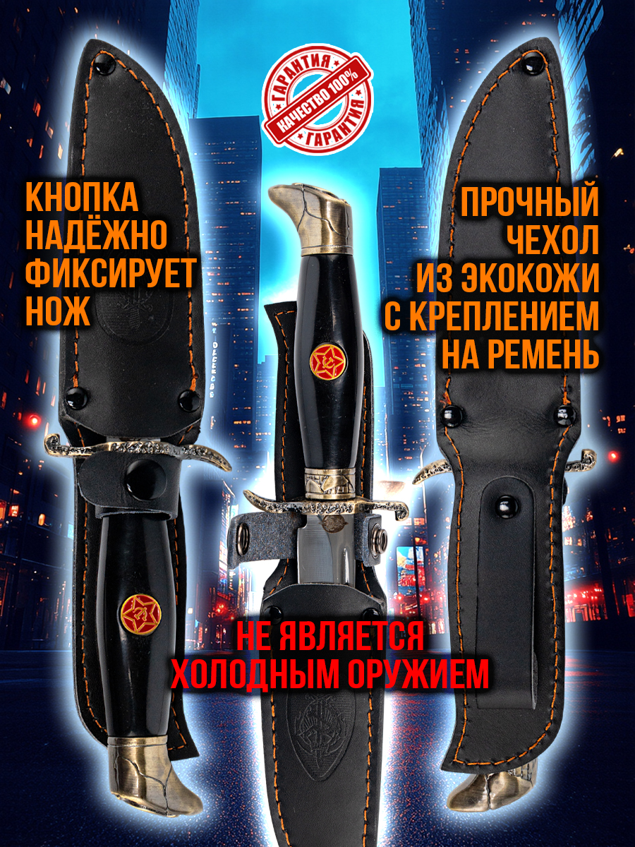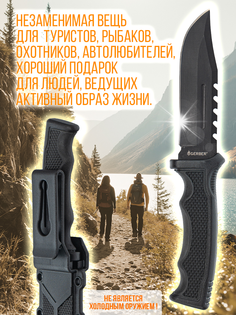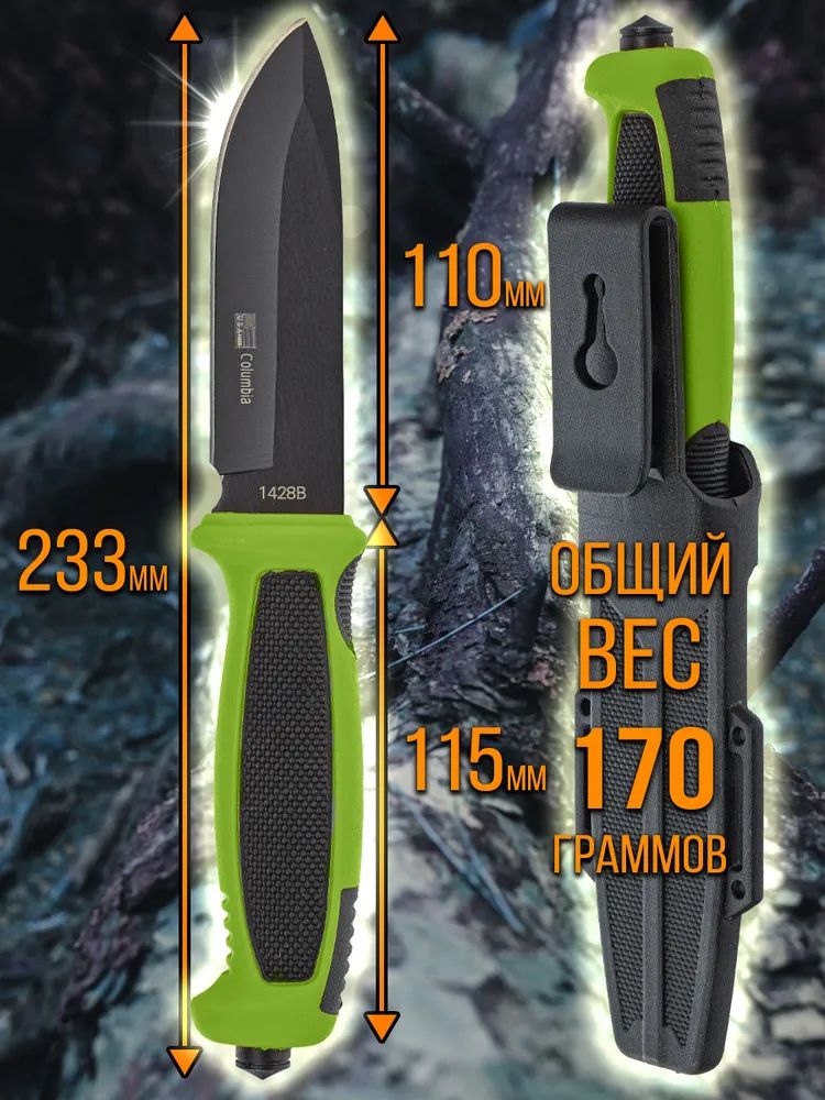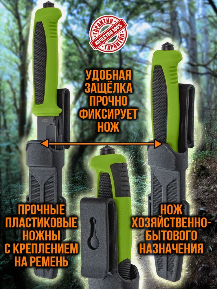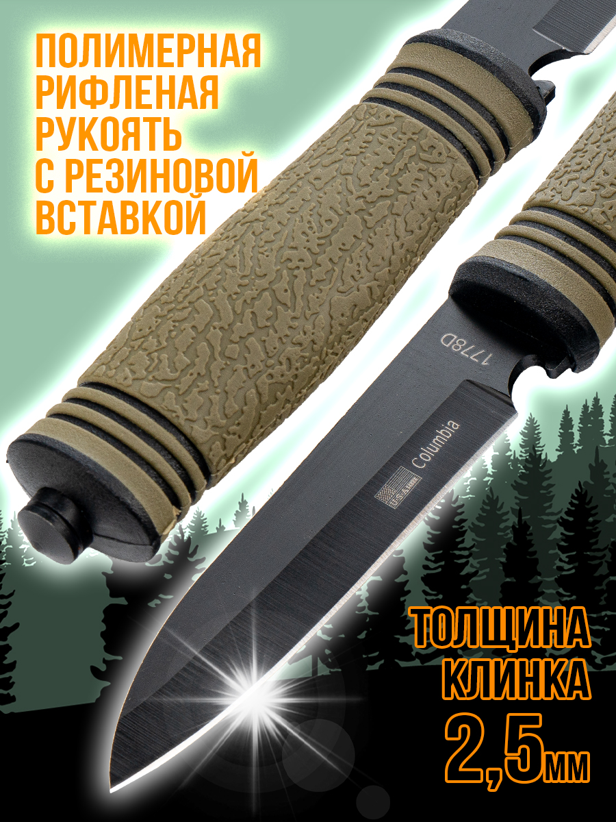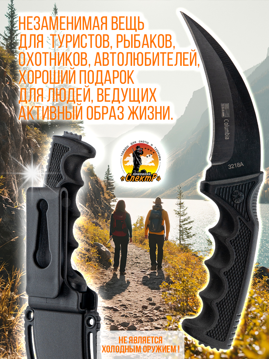 Модель 2958 – туристический, универсальный нож с фиксированным клинком по форме CLIP-POINT и стеклобоем. Клинок со скошенным к острию обухом, скос вогнутый. Сталь прочная, нержавеющая, износостойкая, окрашенная с нанесением рисунка. Легко и быстро поддается заточке, не боится коррозии. Пластиковая рукоять, с резиновой вставкой хорошо лежит в руке и не скользит. Стеклобой послужит хорошим помощником в непредвиденных ситуациях не только для обычных пользователей, но и для профессионалов спасателей. Пластиковые ножны с креплением под ремень, надежно фиксируют нож. Хорошо подойдет для хозяйственно бытовых нужд, кухонных работ, на пикнике, в лесу, на воде. Не один турист, охотник, рыбак не обойдется без ножа, который является предметом снаряжения и пригодится на все случаи жизни. Броский, вызывающий внешний вид, послужит хорошим подарком, для поклонников активного образа жизни.