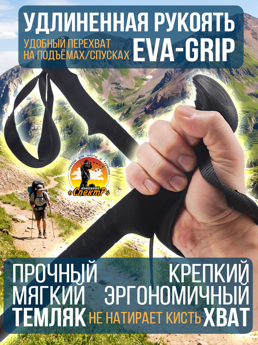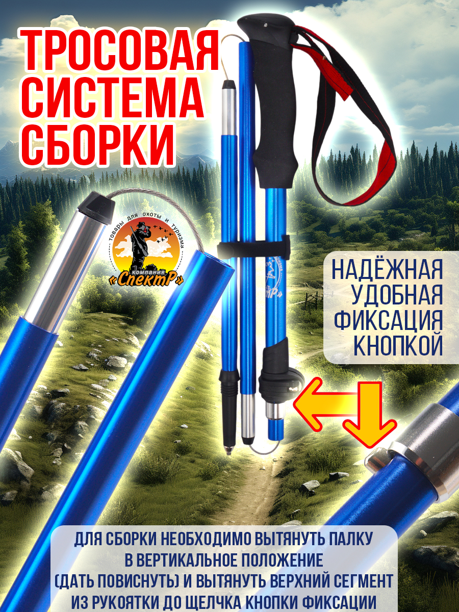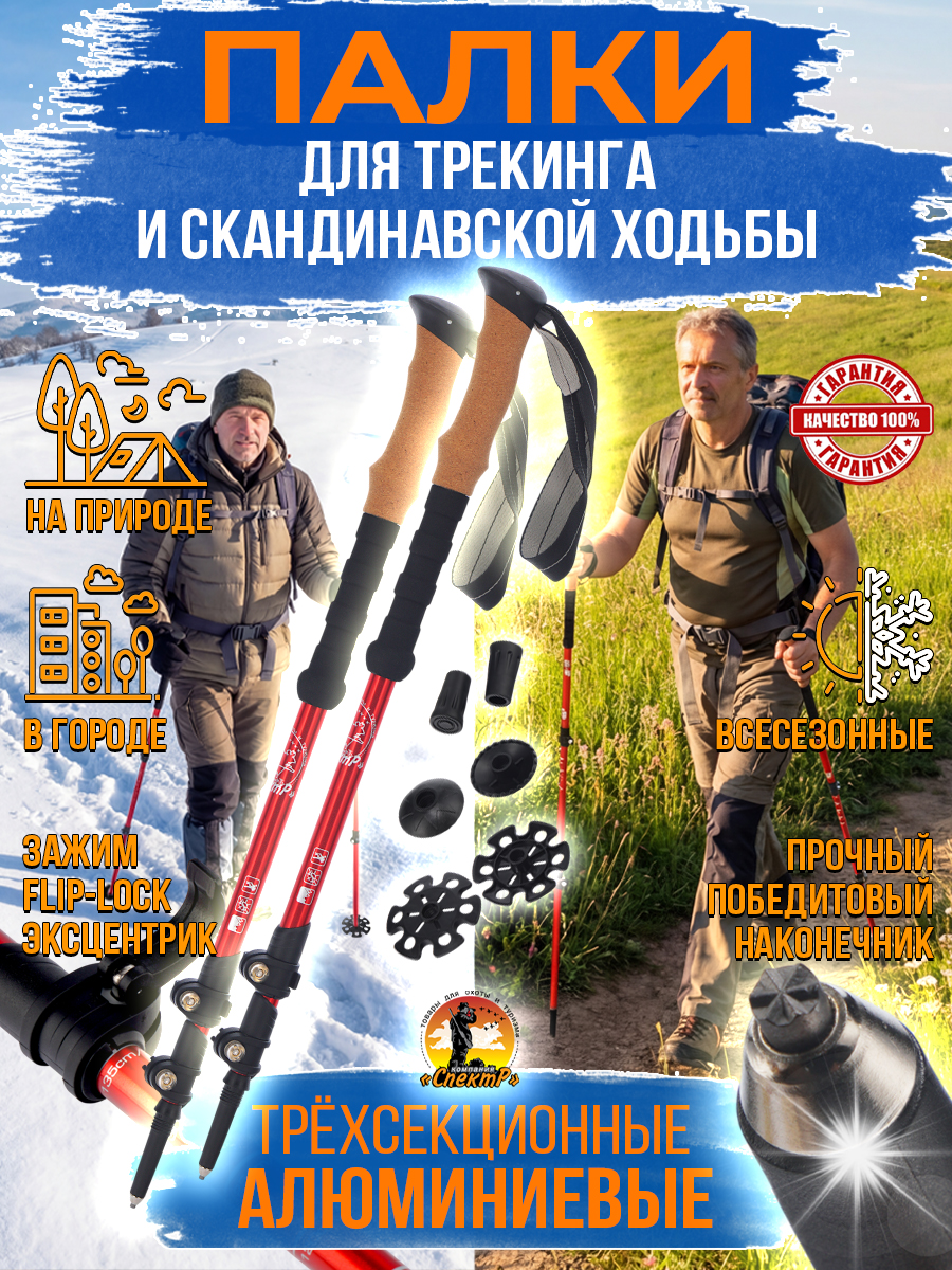 - комплектация: Трекинговые палки 2шт, 3 пары насадок «САПОЖОК», малое кольцо, большое кольцо, чехол для переноса).