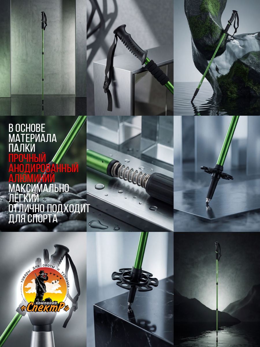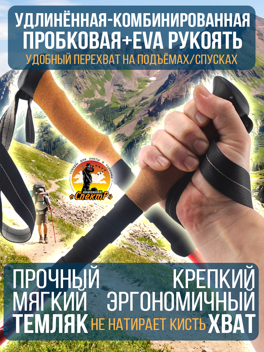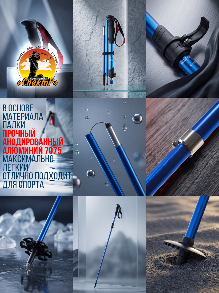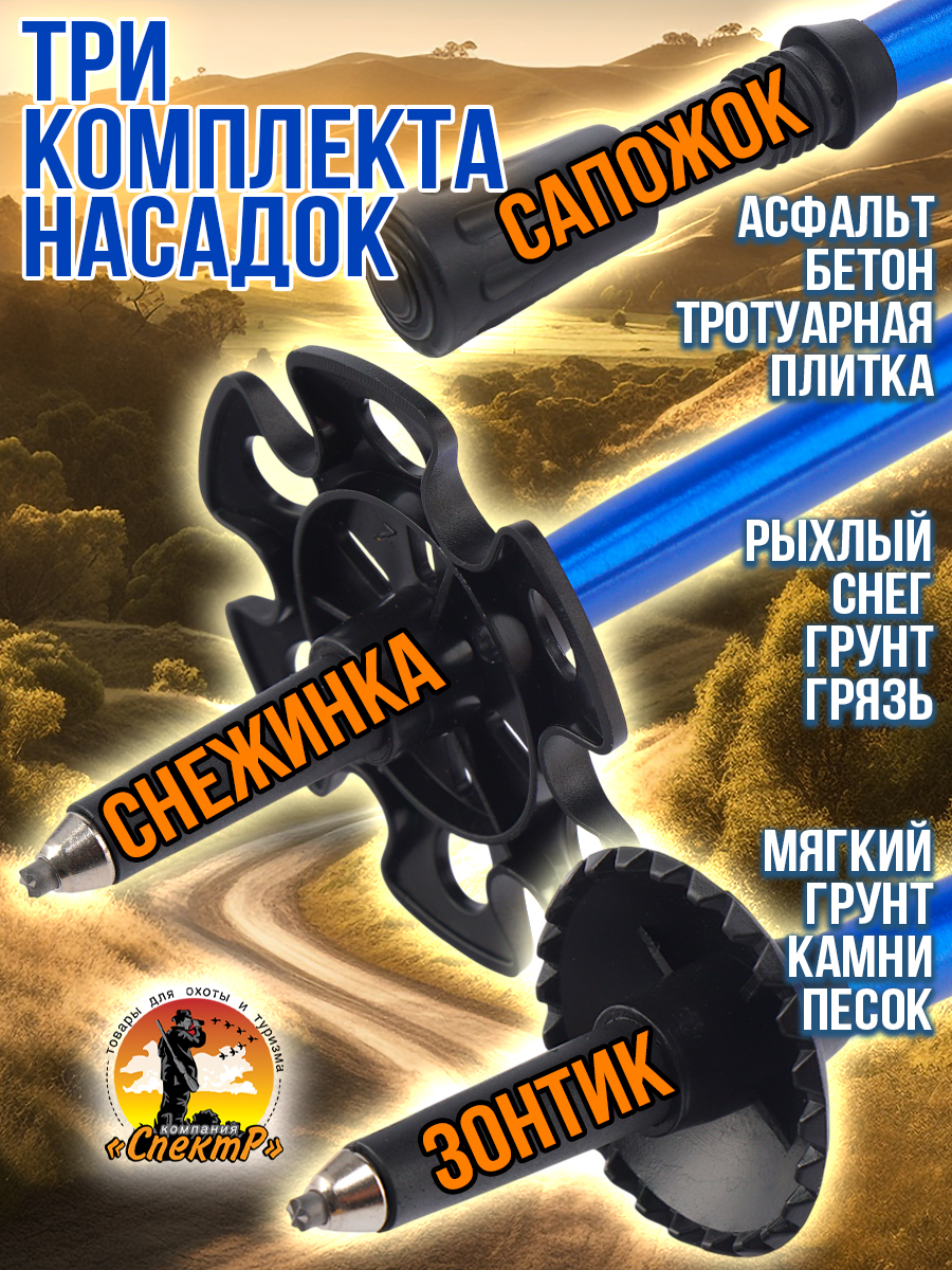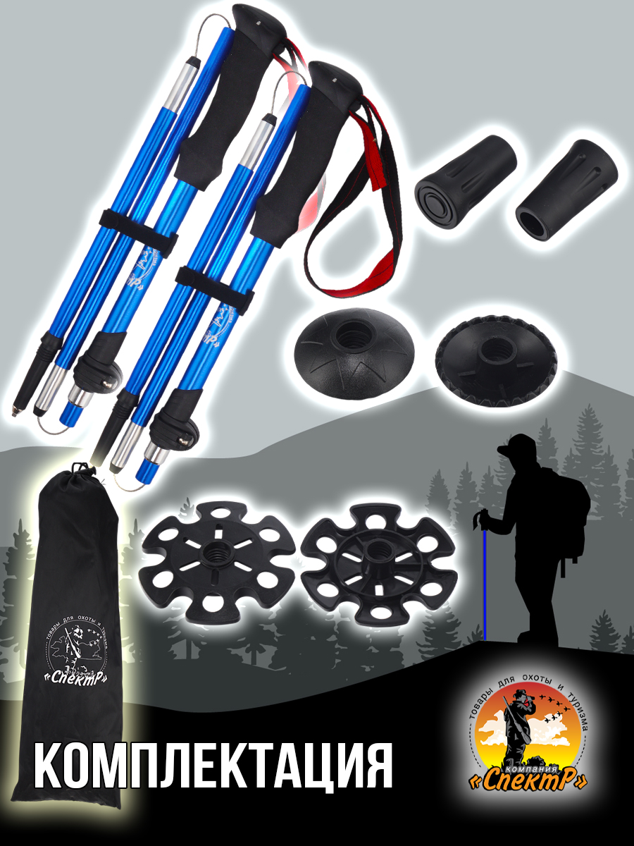 Трекинговые палки 2шт, 3 пары насадок «САПОЖОК», малое кольцо, большое кольцо, чехол для переноса).