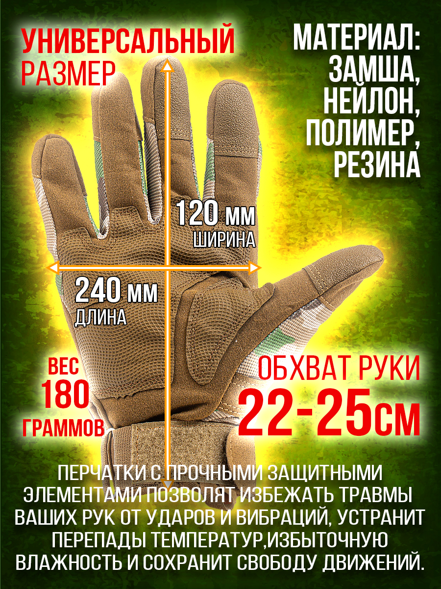 - тип/вид аксессуара: перчатки тактические универсальные.