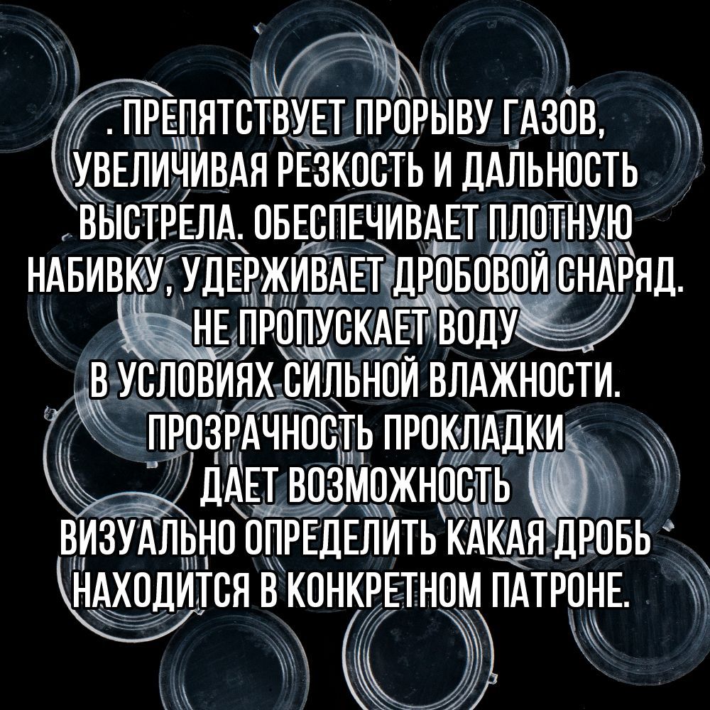 - вид изделия: пластиковая прокладка на дробь либо порох.