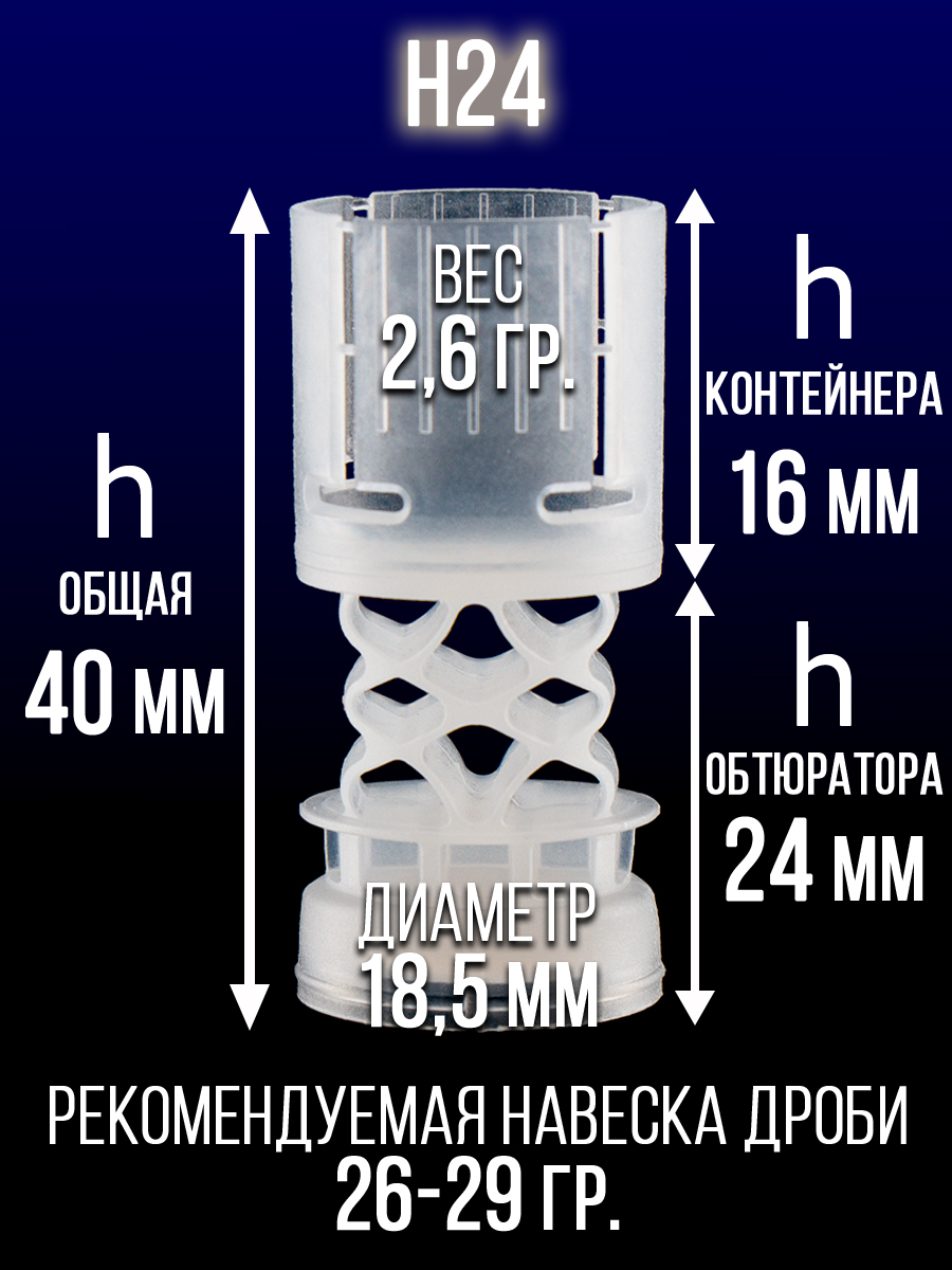 - вид изделия: пыж- контейнер (дробовой) с обтюратором(амортизатор).