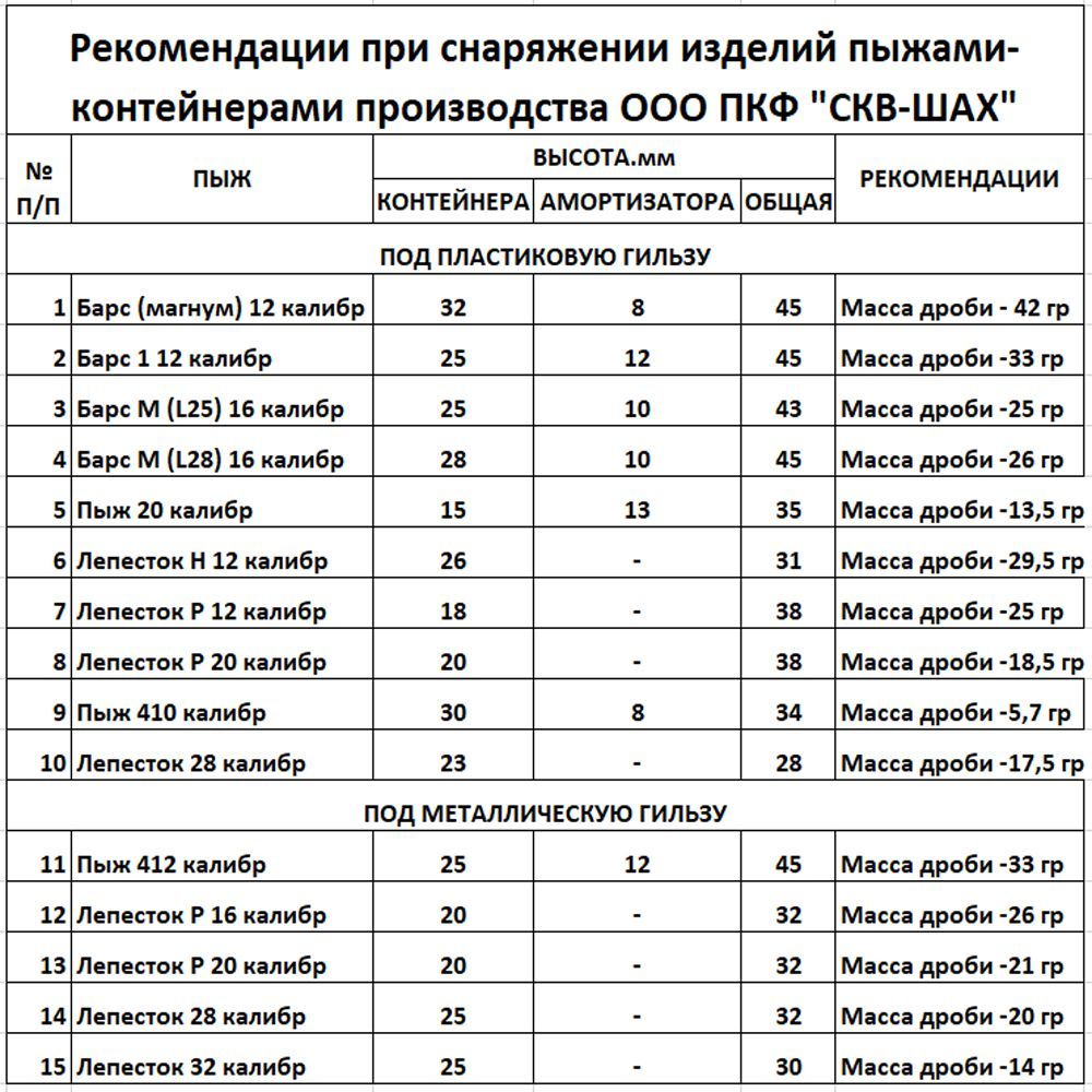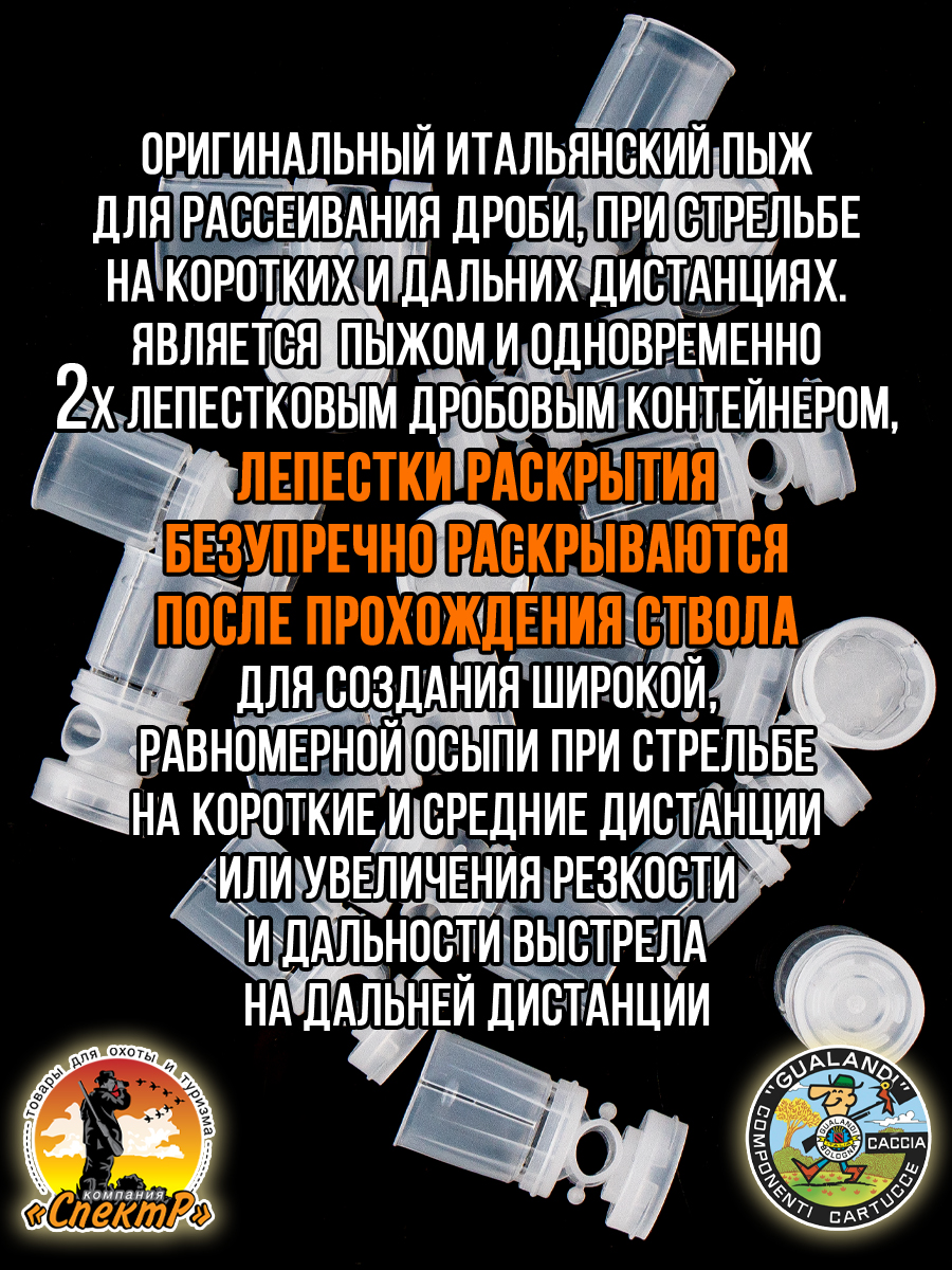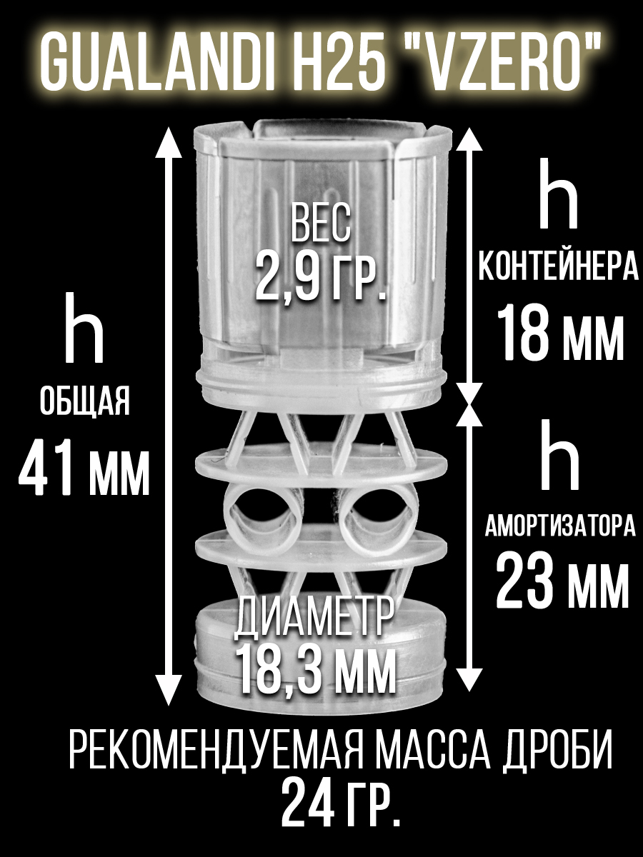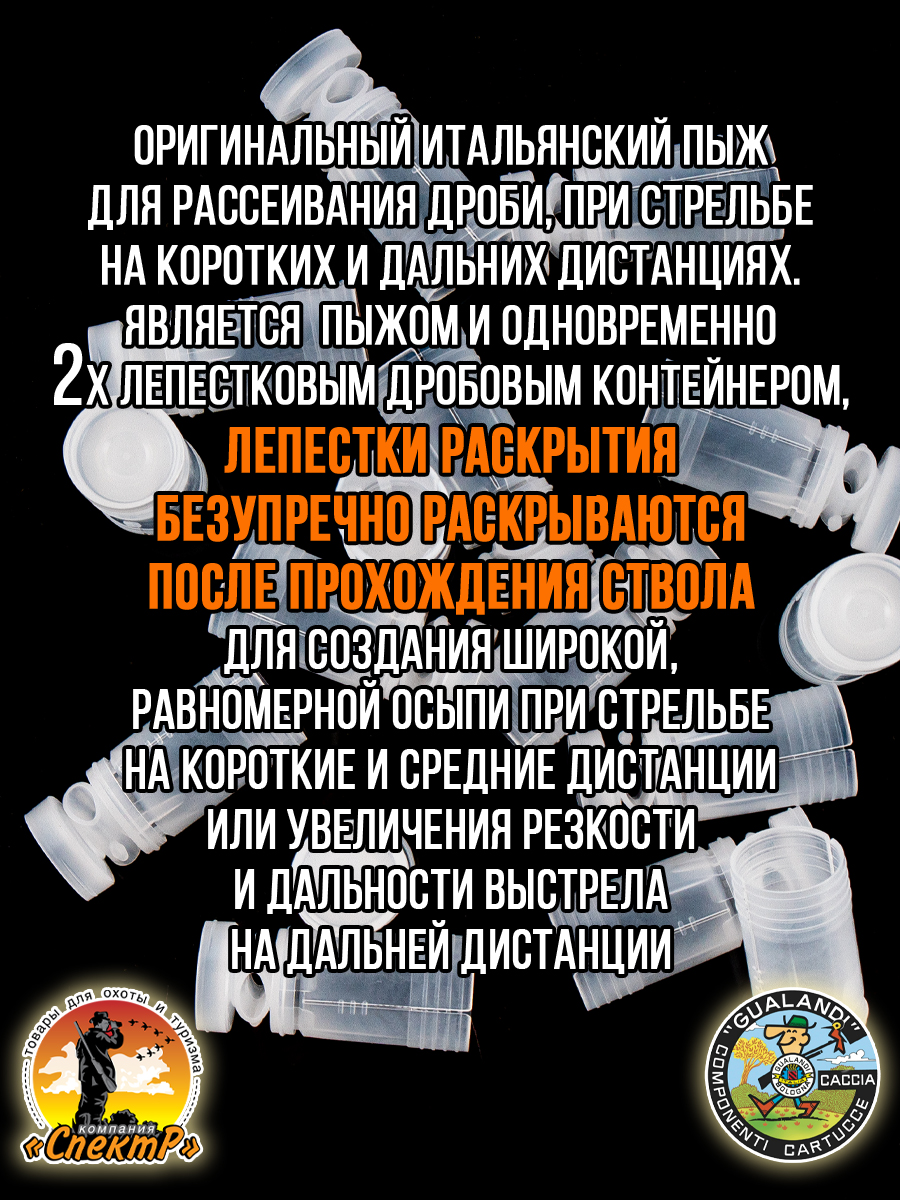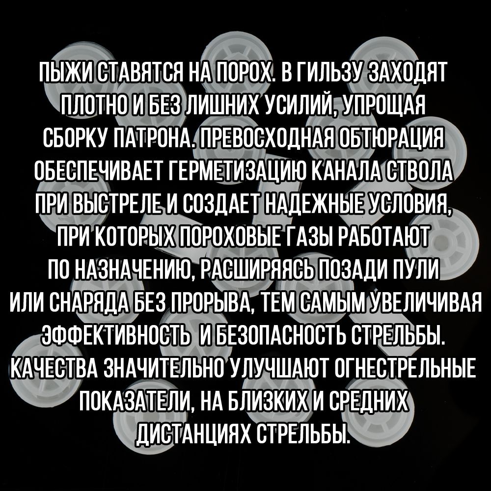- толщина стенок пыжа/ вес изделия: 1мм/ 1,9гр.- рекомендуемая масса дроби: 13,5гр.