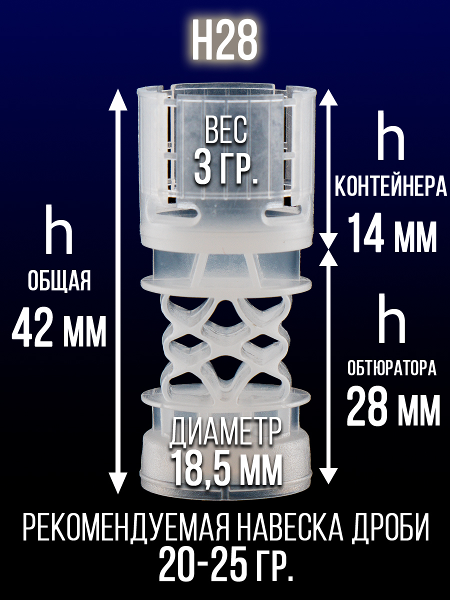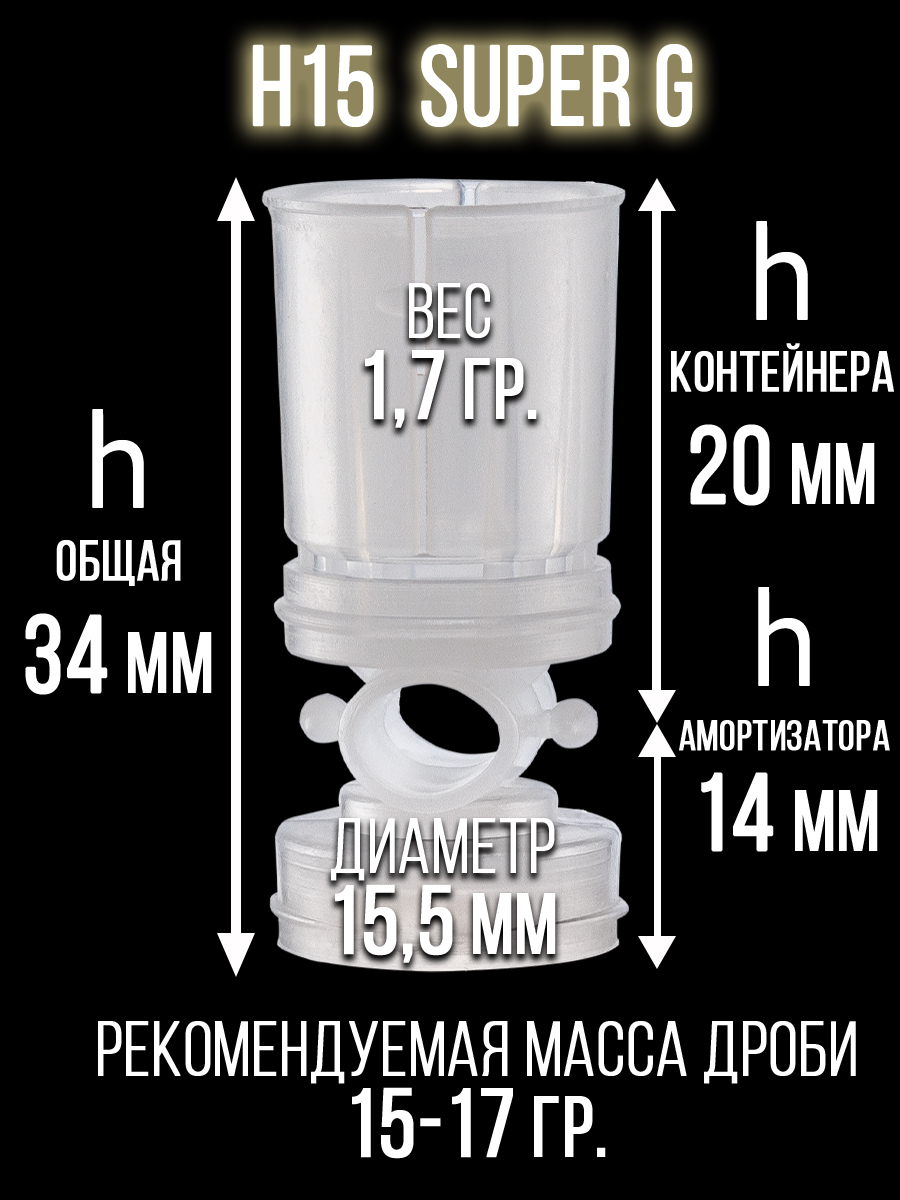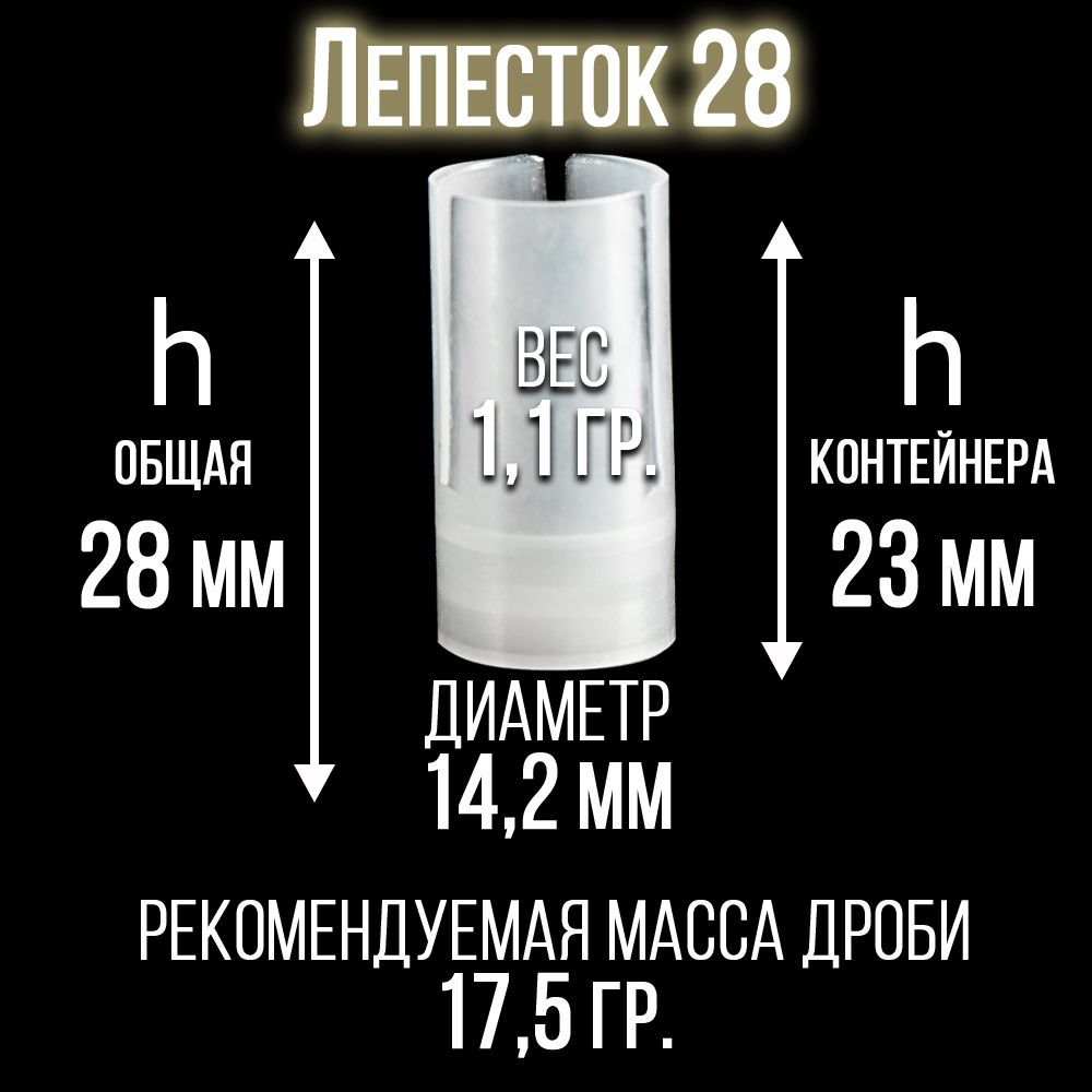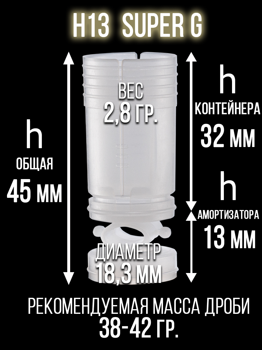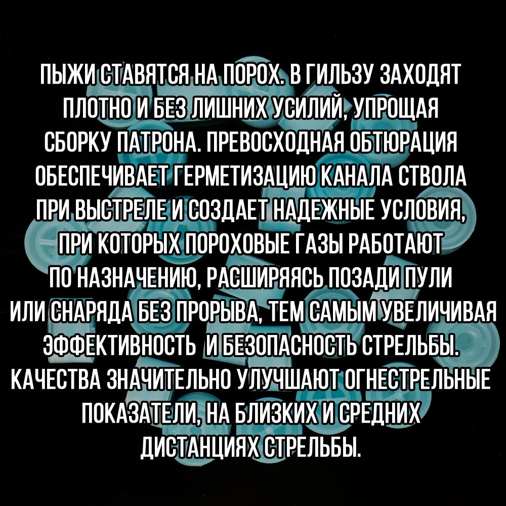 - толщина стенок пыжа/ вес изделия: 1мм/ 1,9гр.- рекомендуемая масса дроби: 13,5гр.