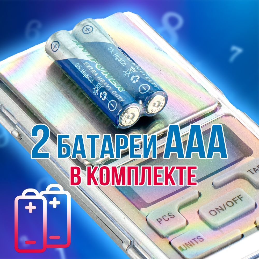 Дисплей ЖК с подсветкой. Питание от 2х батарей размер ААА. Измерения можно выбрать в граммах, каратах, унциях. тайлах и гранах. С помощью функции PCS можно подсчитать предметы по весу. Для удобства взвешивания есть функция учета веса тары и регулируемая подсветка дисплея. После окончания использования для энергосбережения, весы автоматически, через 60 сек., выключаются. Компактные размеры и малый вес с легкостью поместят данную модель в карман. Прекрасно подойдут для регулярного и периодического использования, а красивый эстетичный вид послужит хорошим подарком для поклонников активного образа жизни.